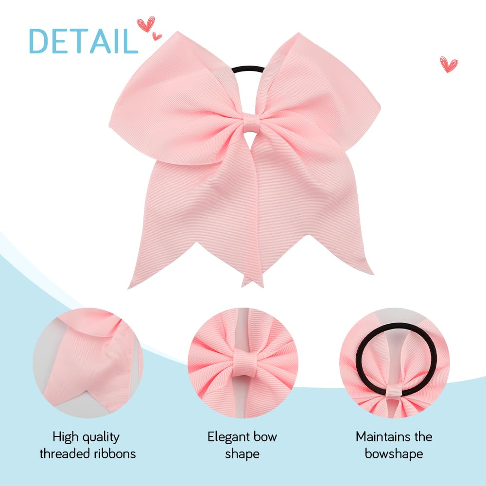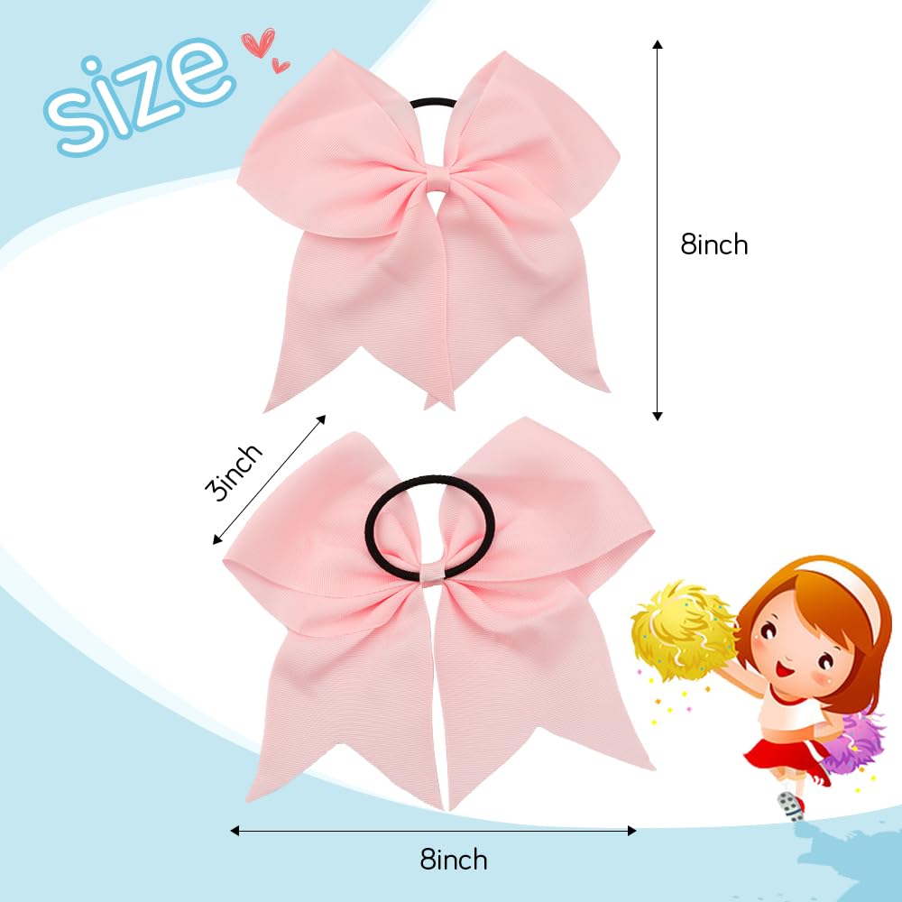 Great quality: 2pcs jumbo 8 inch hair bows for girls are made of high quality 3 inch wide grosgrain ribbon with elastic ponytail holder, light weight about 12g/pc, 100% handmade cheer bows with beautiful shape, the workmanship is excellent, the bow and the hair ties are well glued, and you don't have to worry about falling off, they stay in the ponytail well, girls can jump and shout when they wear it.girls bows for hair, is a favorite hair accessory for all teen girls.