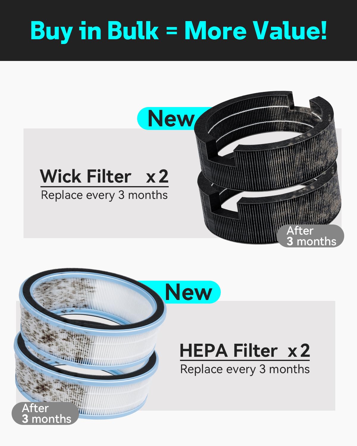 COST-EFFECTIVE BUNDLE: Each set includes 2 HEPA filters + 2 Wick filters. Buying in bulk means save money