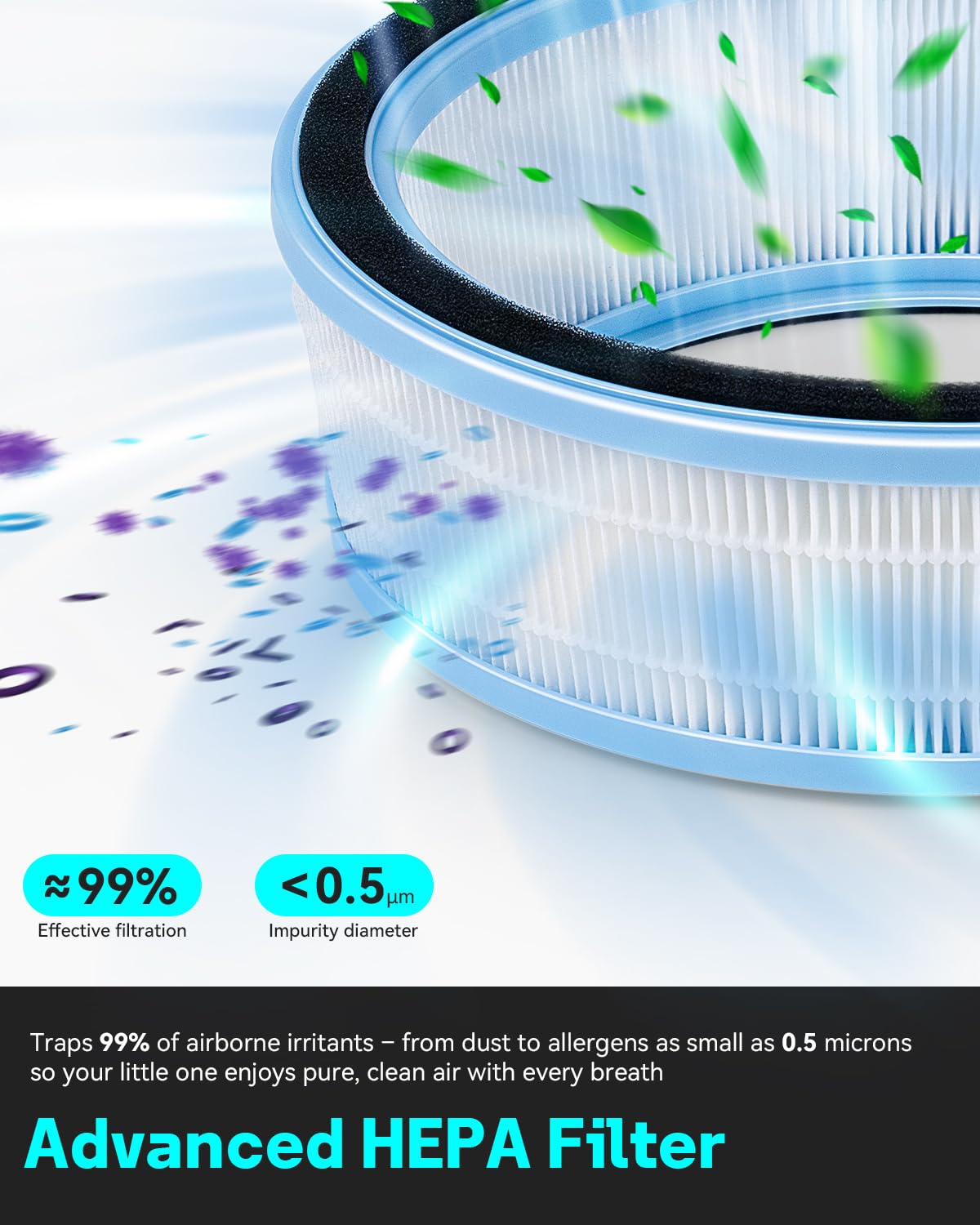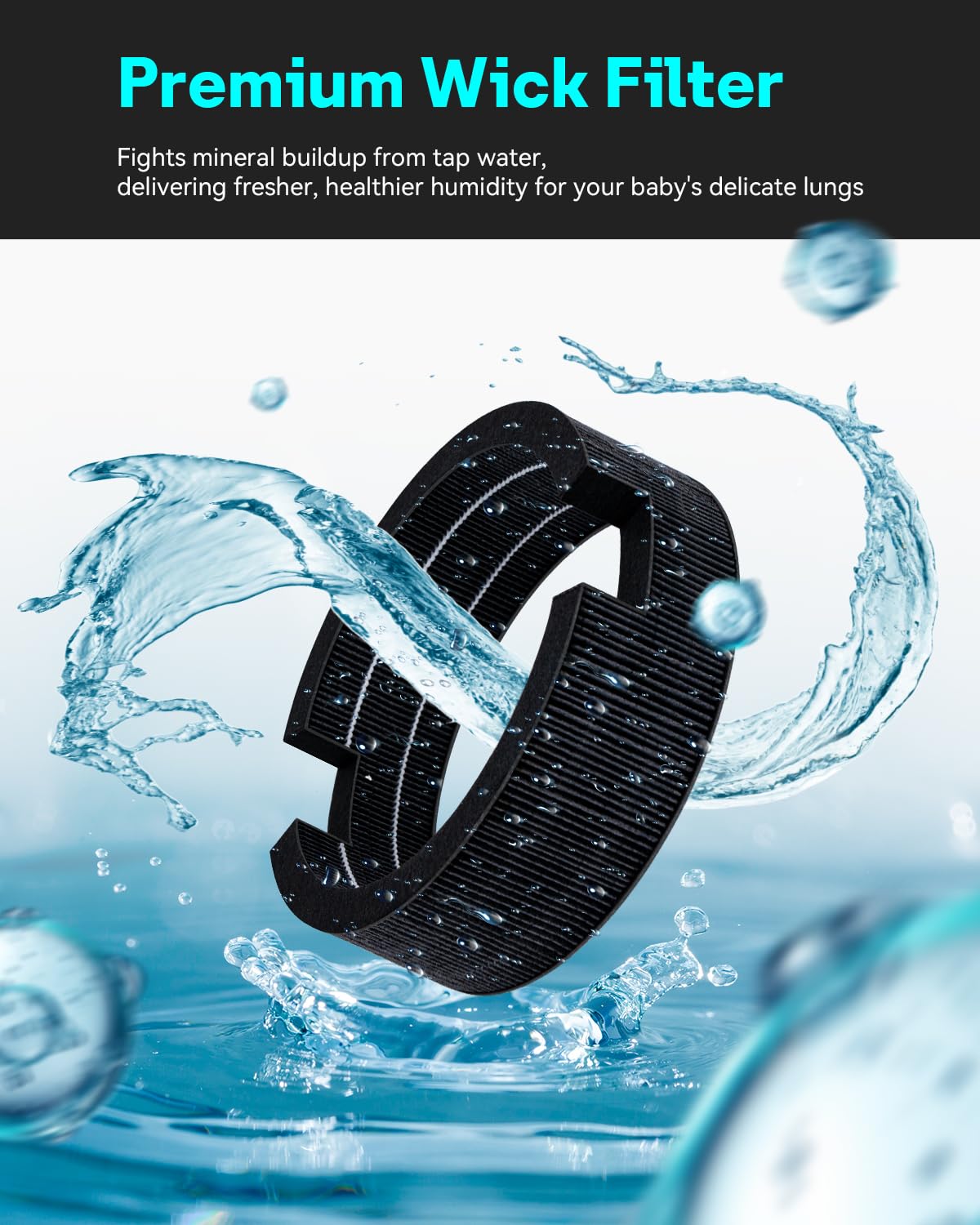 ENHANCED AIR & WATER FILTRATION: The HEPA filter and the wick filter together enhance air quality and maintain a healthy humidity level—ideal for bedrooms, nurseries, and baby rooms