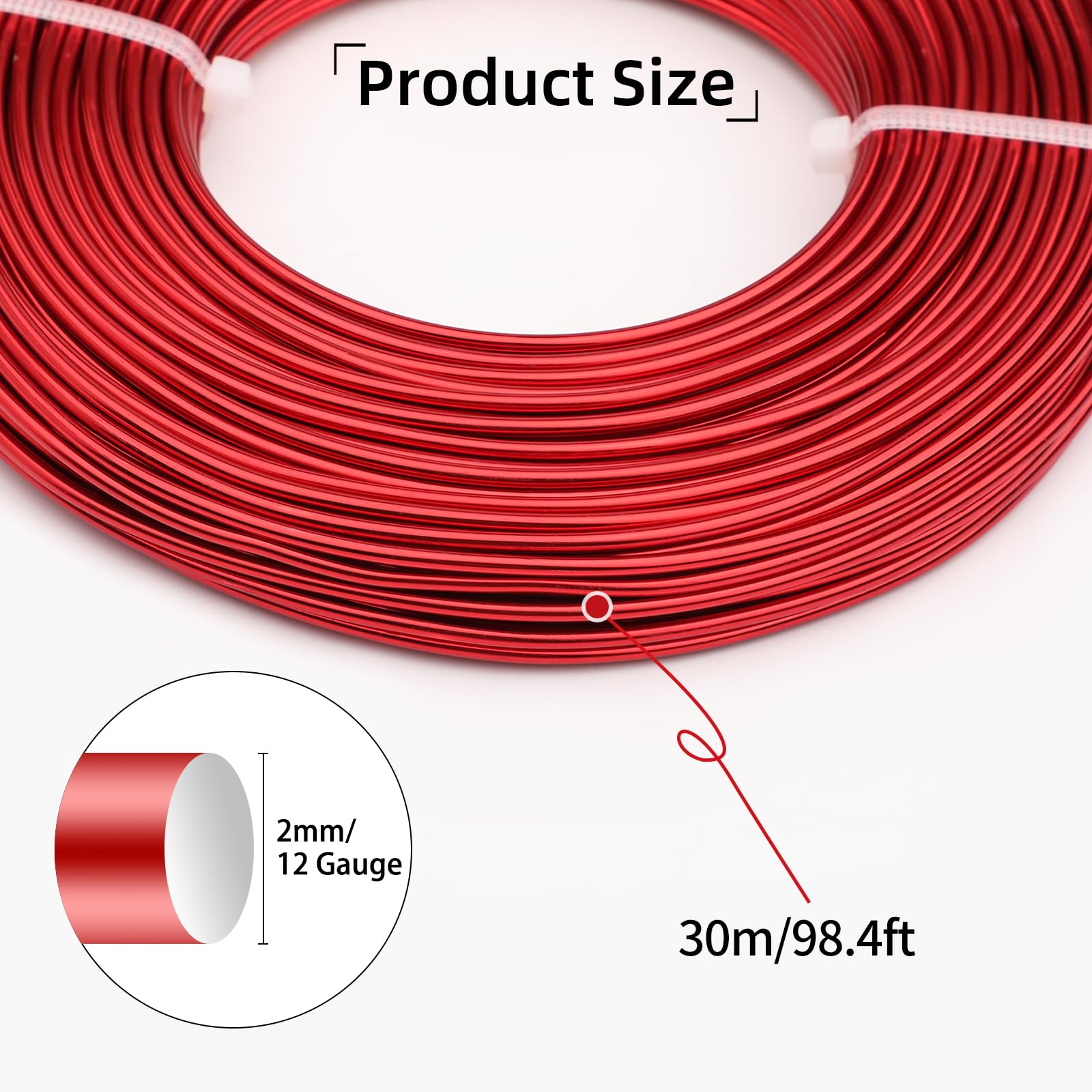 Durable Aluminum Craft Wire: A 98.4ft/30m long and 2mm diameter wire, crafted from sturdy aluminum ideal for jewelry making and diverse crafting projects. (Note: Contains a splicing interface in a small portion.)