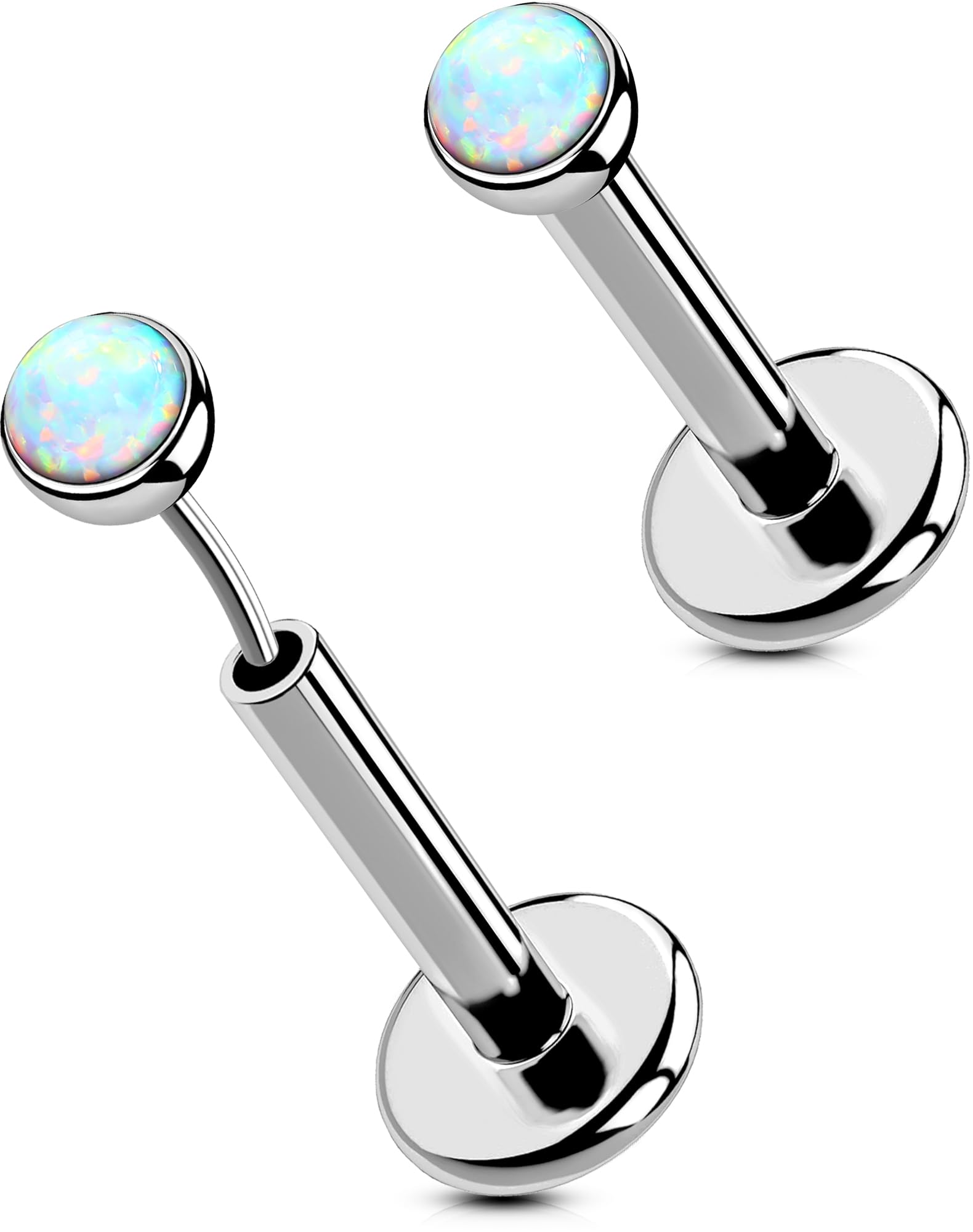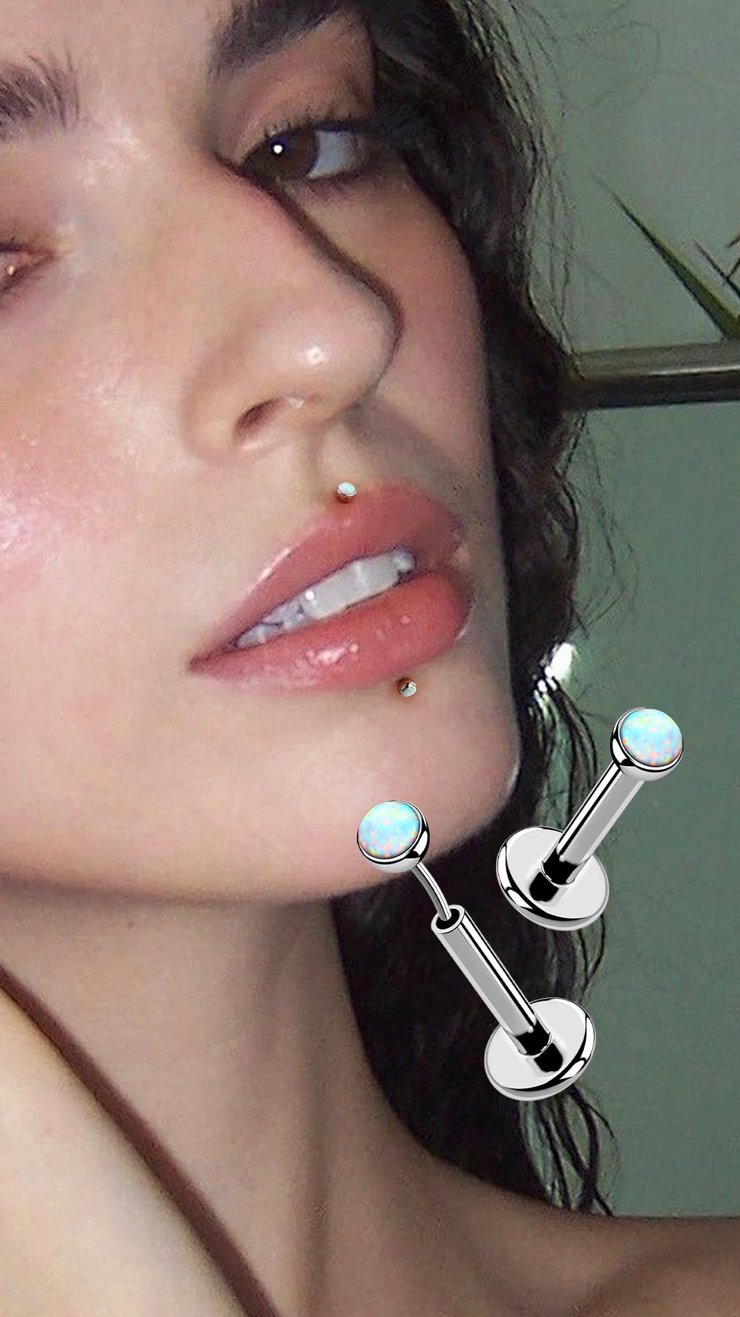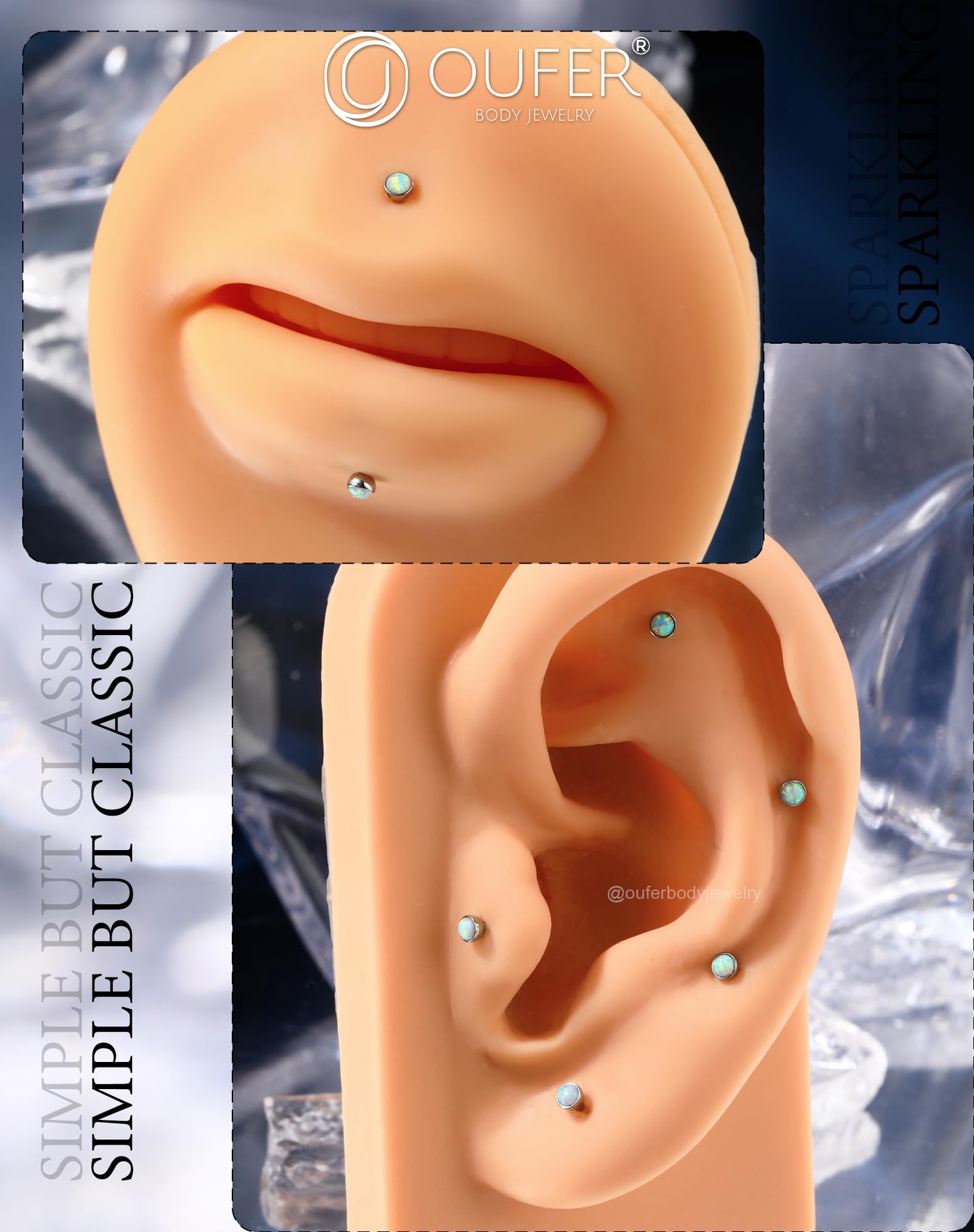 2.5MM White Opal Design --- This G23 solid titanium White Opal flat back nose rings stud's sleek design paired with a gorgeous White Opal creates a unique blend of personality and elegance, making you the center of attention in any setting.