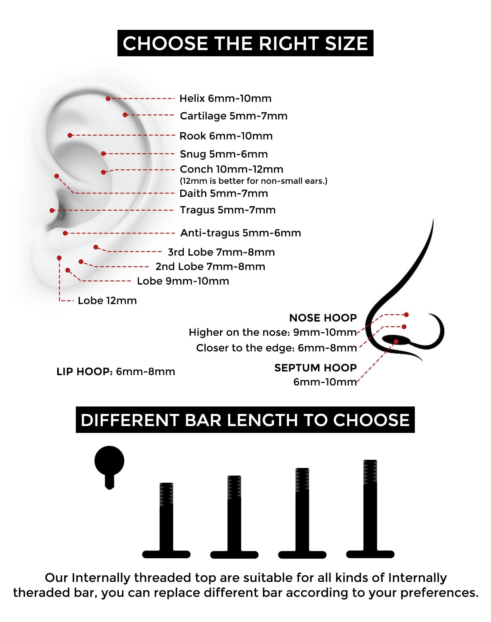 Versatile Application --- The flat back studs can be worn on different body piercing such as nose lip cartilage helix tragus conch lobe piercing jewelry.