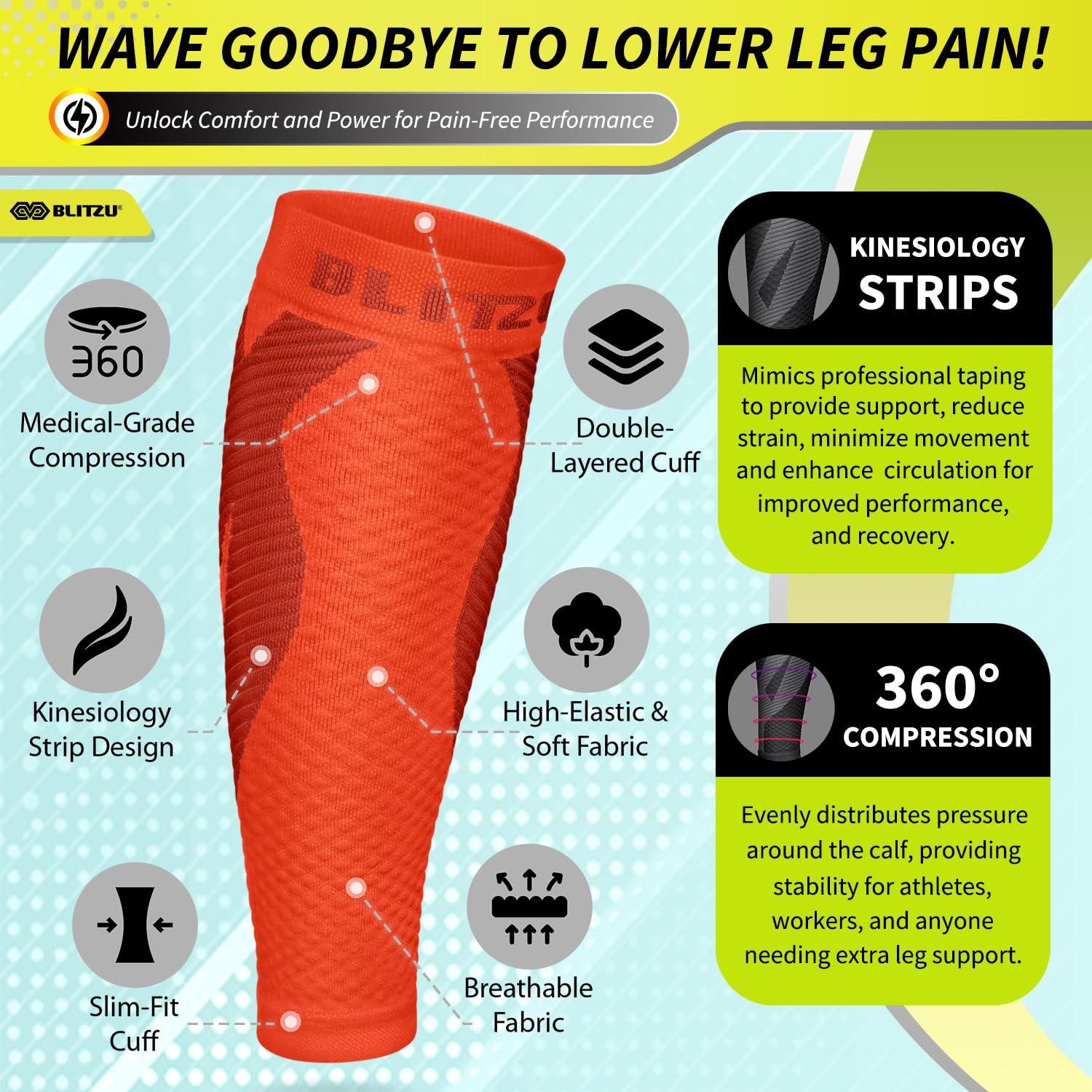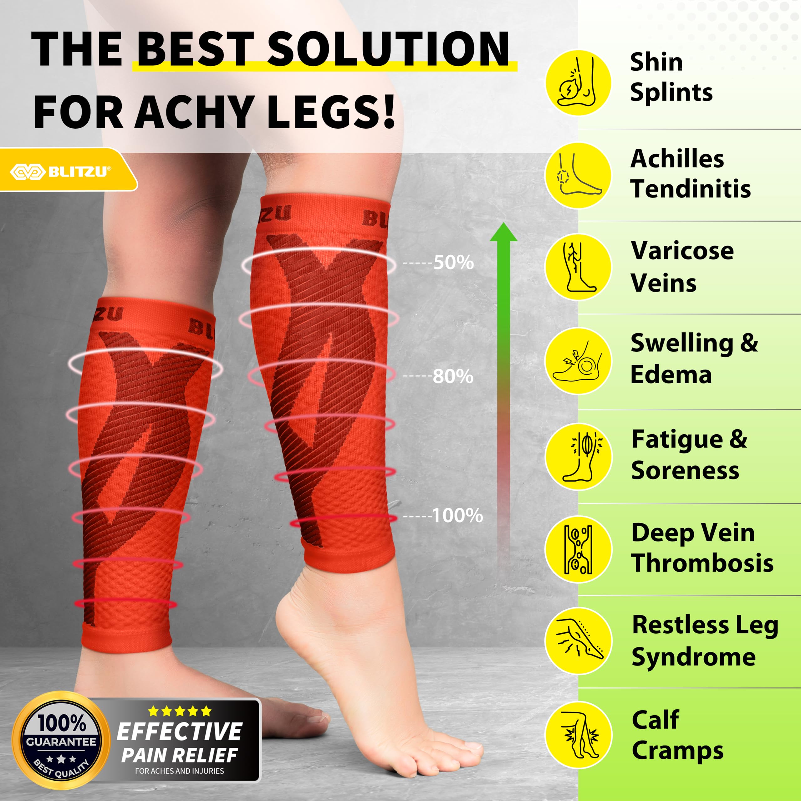 Effective Compression for Swelling & Varicose Veins Relief: The BLITZU Calf Compression Sleeves feature graduated compression to improve blood circulation, reduce swelling, and alleviate discomfort caused by varicose veins and pregnancy-related leg swelling, making them perfect for nursing mothers and individuals with circulation issues.
