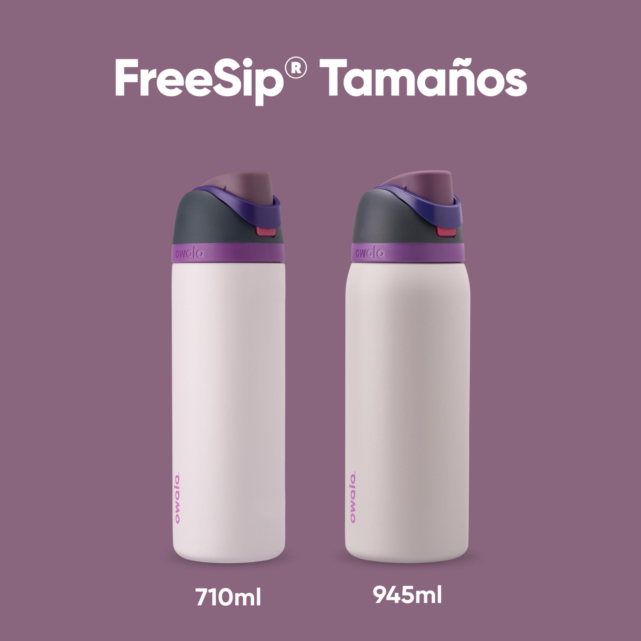 The Owala FreeSip Insulated Stainless-Steel Water Bottle with Locking Push-Button Lid easily tackles every thirst. With a built-in, easy-clean straw and a wide-mouth opening, the FreeSip reusable bottle is designed for drinking two different ways: sipping upright through the straw or tilting back to swig from the wide-mouth spout opening. Add in a push-to-open lid and playful colors, and staying hydrated has never been simpler—or more fun. Additional features include double-wall insulated stainless steel that keeps drinks cold up to 24 hours, a carry loop that doubles as a lock, and a wide opening for easy cleaning and adding ice. The Owala FreeSip Insulated Stainless-Steel Water Bottle with Locking Push-Button Lid is available in three sizes: 24-Ounce, 32-Ounce, and 40-Ounce. Lid is dishwasher safe; hand wash cup. Not for use with hot liquids. Manufacturer’s limited lifetime warranty.