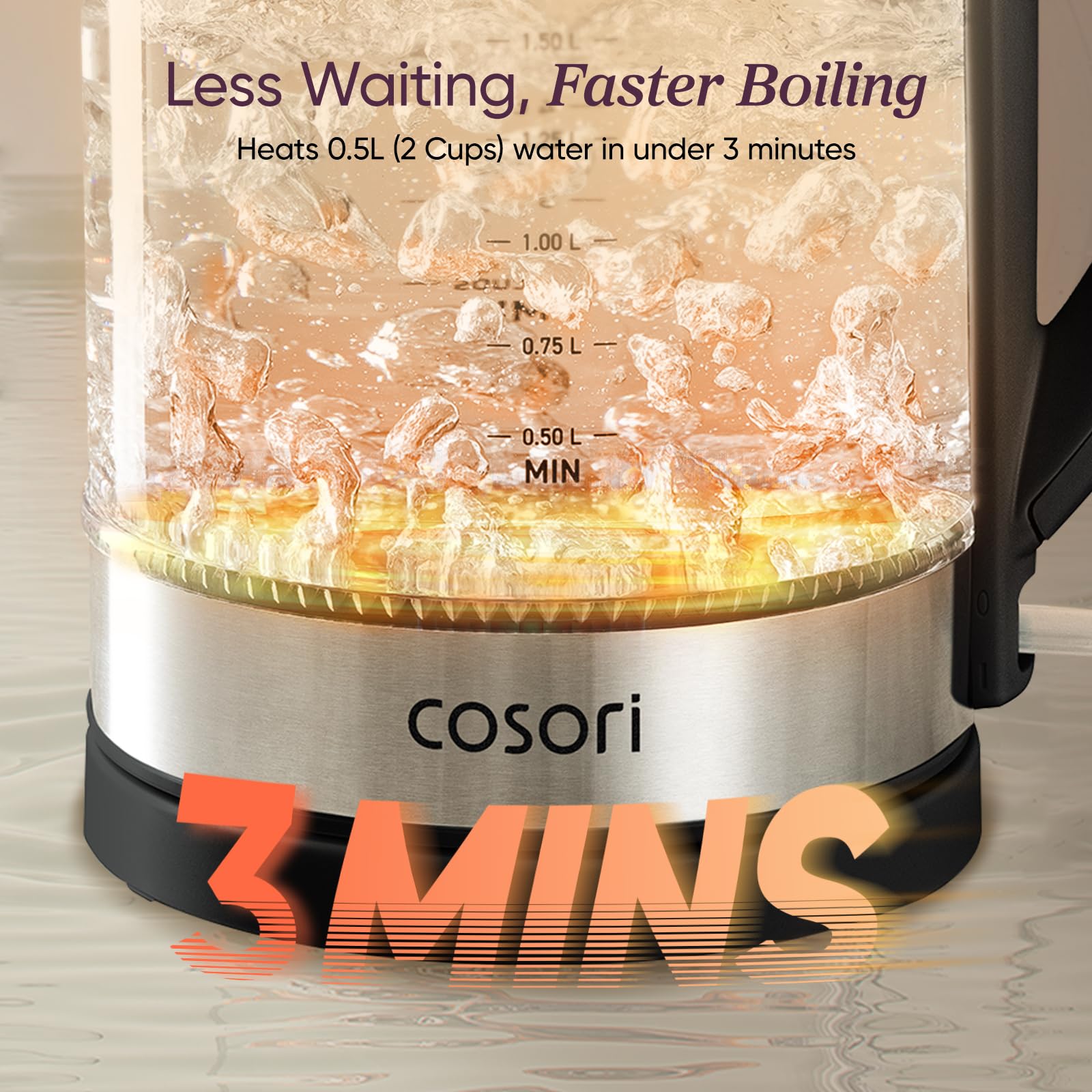 Faster Than a Stovetop Kettle—— Boils a full cup of water in under 3 minutes for less wait time