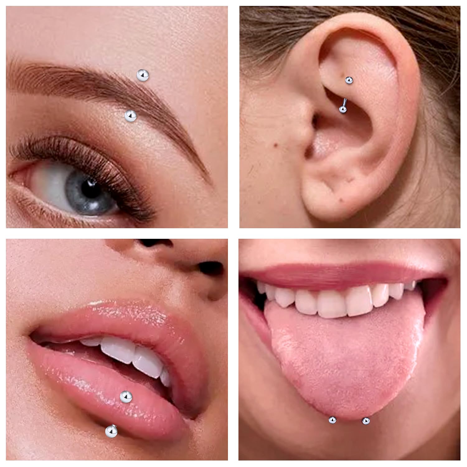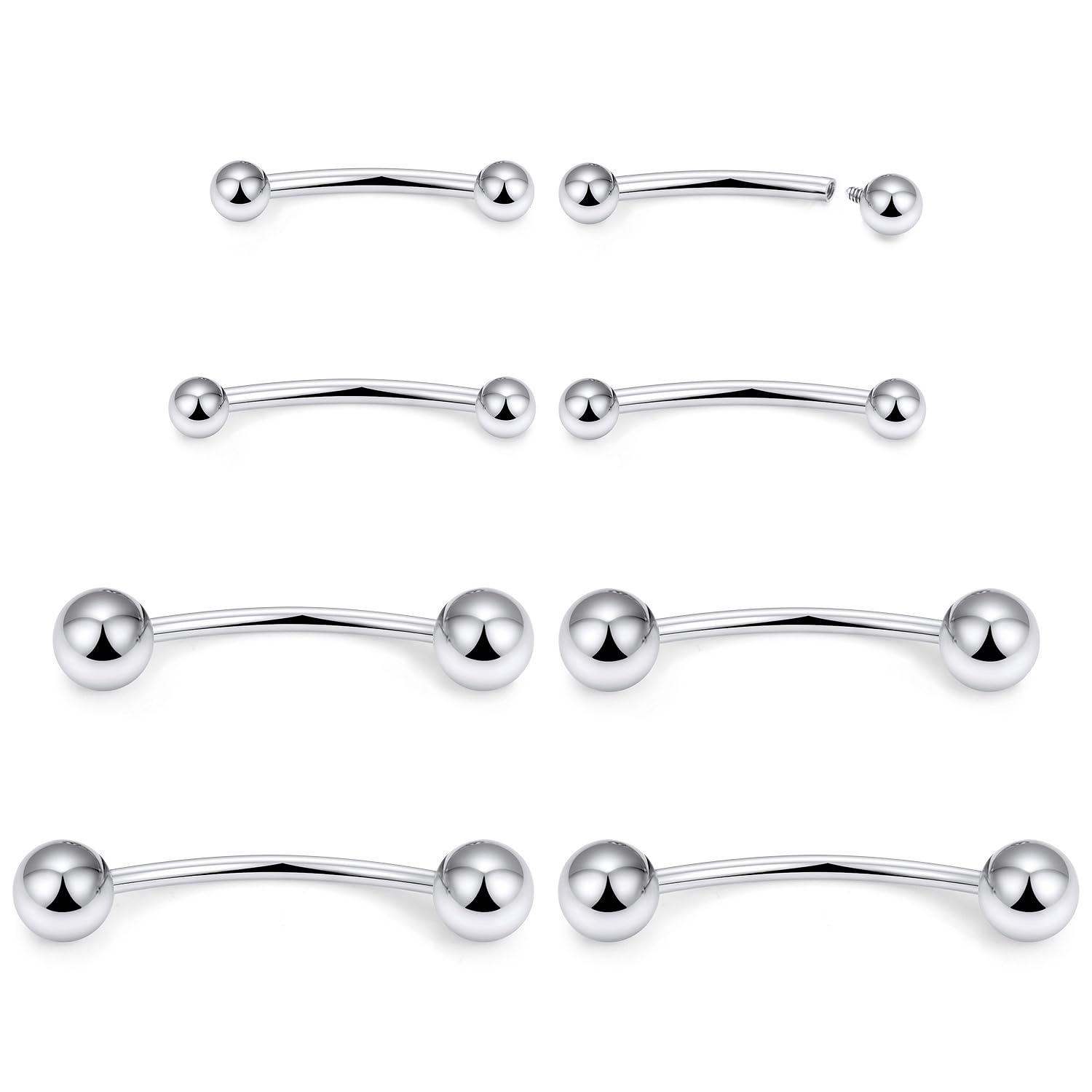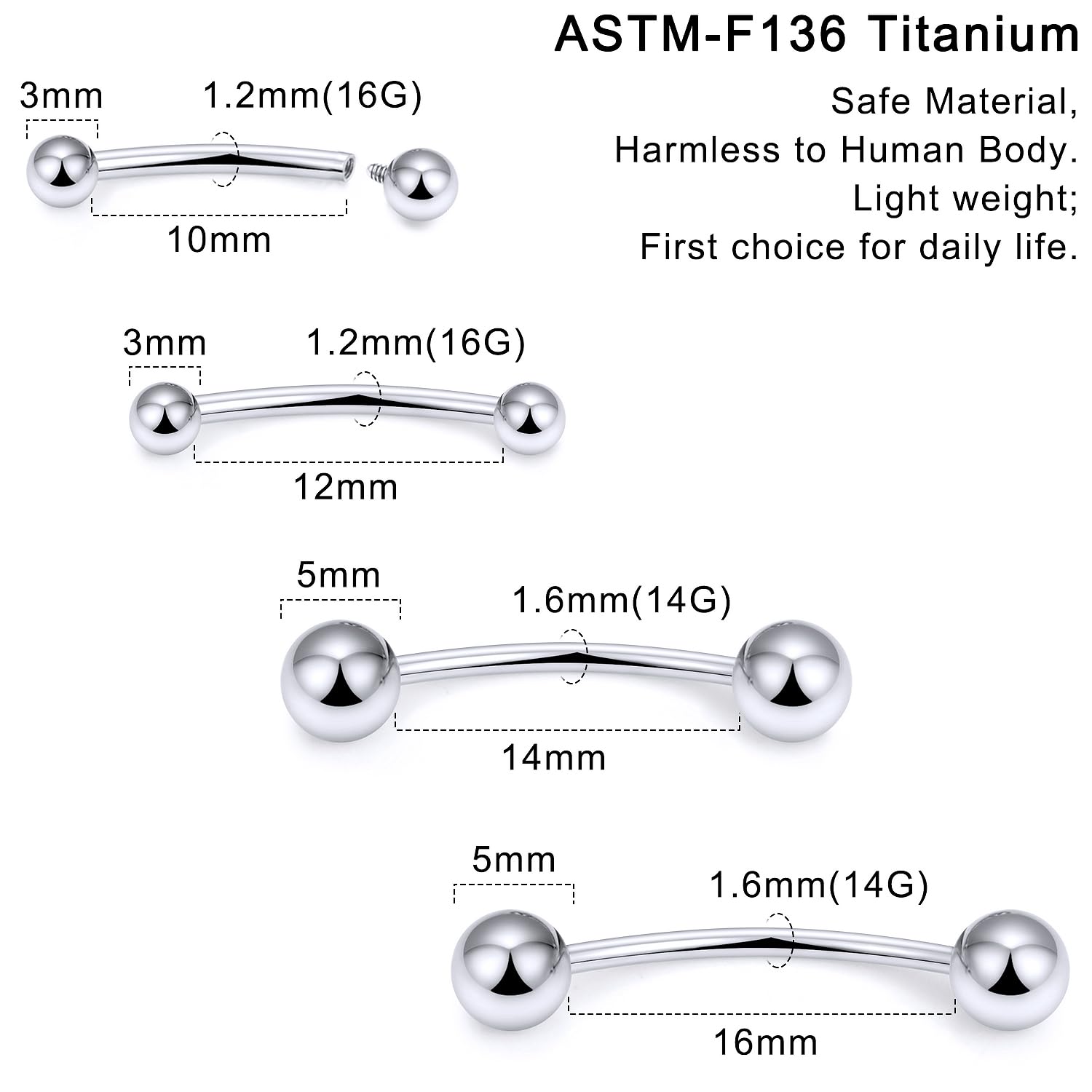 【Multiple Uses】: Titanium internal thread Curved Barbell Piercing Used as Eyebrow Piercing Jewelry, Anti Eyebrow Piercing Jewelry, Vertical Labret Lip Jewelry, Rook Earrings, Bridge Piercing Jewelry, Small Blley Button Ring, Navel Rings, Frog Eyes Piercing Jewelry, Snake Eyes Tongue Rings, Snake Eyes Piercing Jewelry, Vertical Hood Piercing Jewelry, Surface Tragus Piercing Jewelry, VCH Piercing Jewelry.
