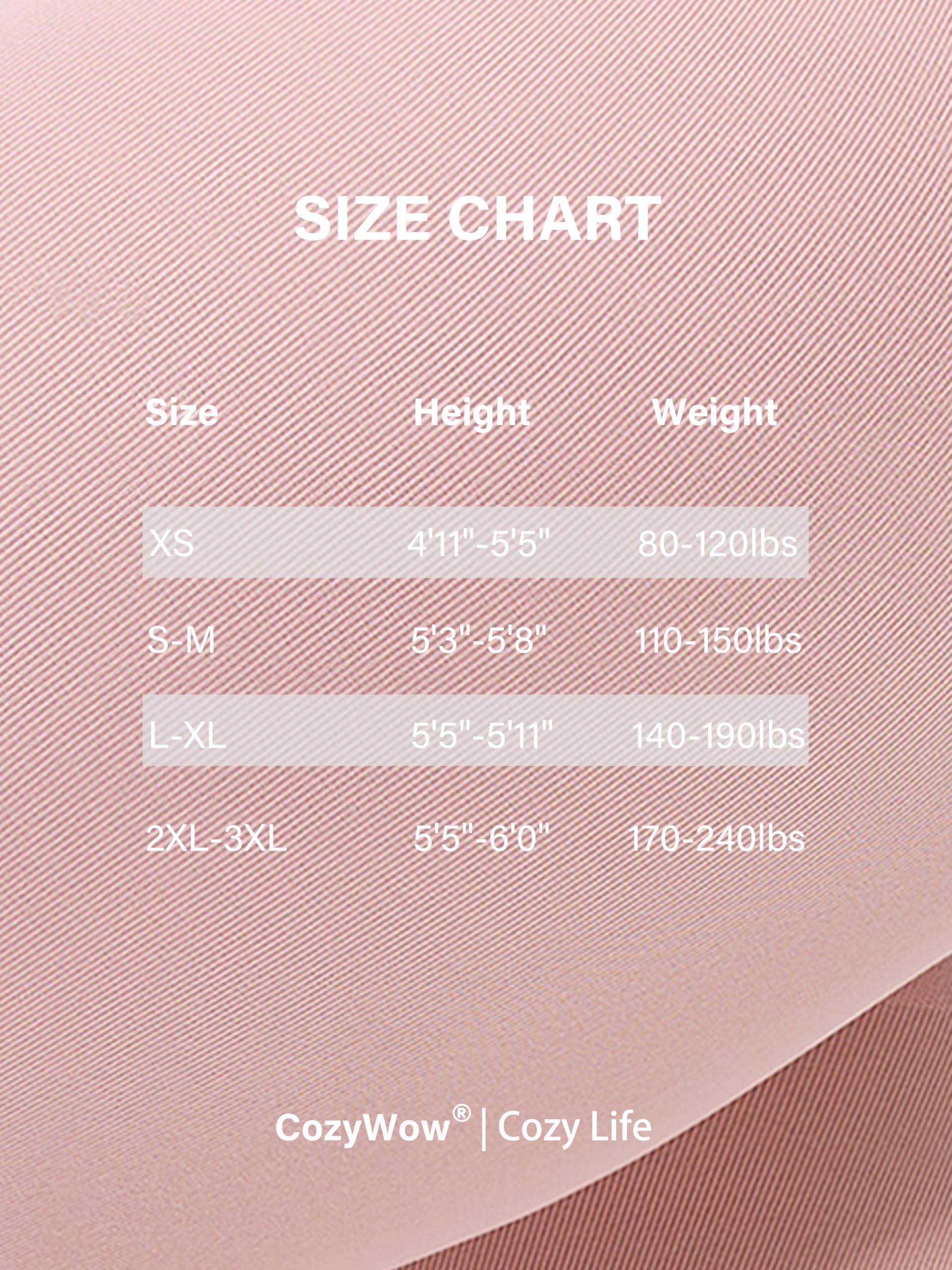 Size Recommended:XS: Height 4'11"-5'5" , Weight 80-120lbs. S-M: Height 5'3"-5'8", Weight 110-150lbs. L-XL: Height 5'5"-5'11", Weight 140-190lbs. 2XL-3XL: Height 5'5"-6', Weight 170-240lbs. Our stockings' design ensure elegance and comfort for every body type.