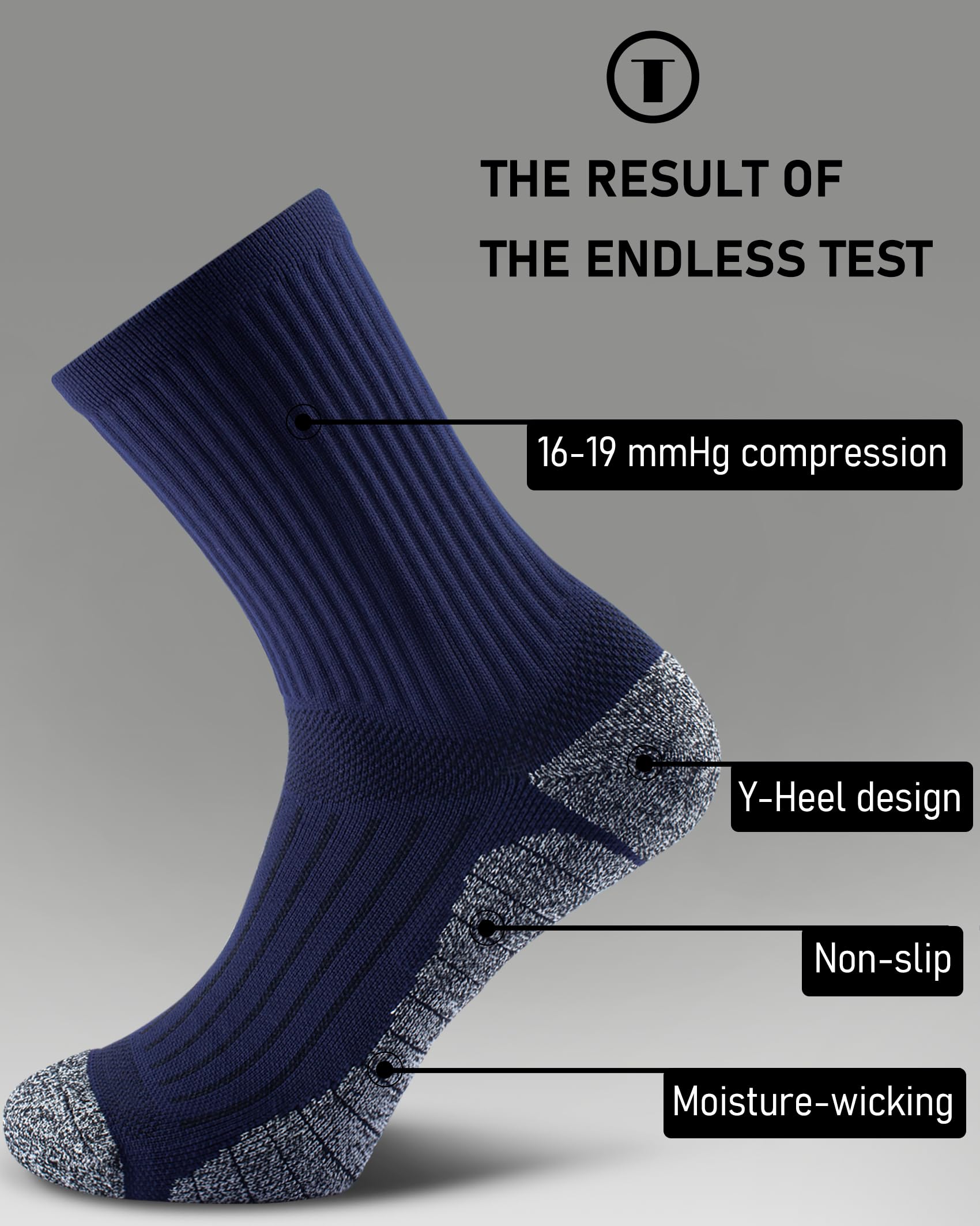 Targeted cushioning and compression, shock absorption, anti blister, arch support, ankle and achilles tendon protection