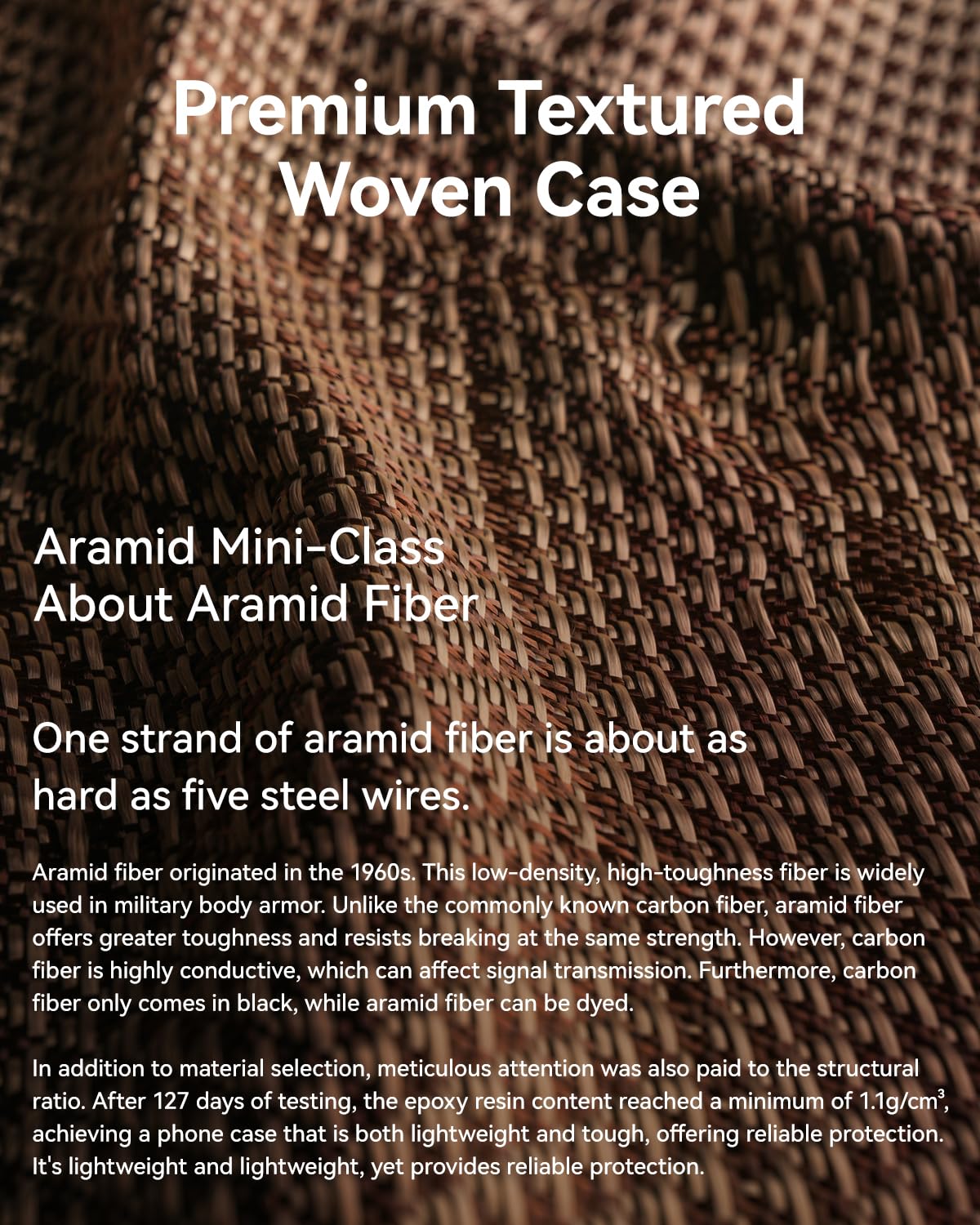 [Ultra-Light Military-Grade Defense] Crafted with aerospace-grade aramid fiber 5x stronger and 50% lighter than steel, this featherlight shield delivers military-grade protection without bulk. Unlike carbon fiber, its precision-woven structure ensures zero signal interference with non-conductive durability that resists scratches, discoloration, and yellowing - all while maintaining a cloud-like 0-gravity grip.