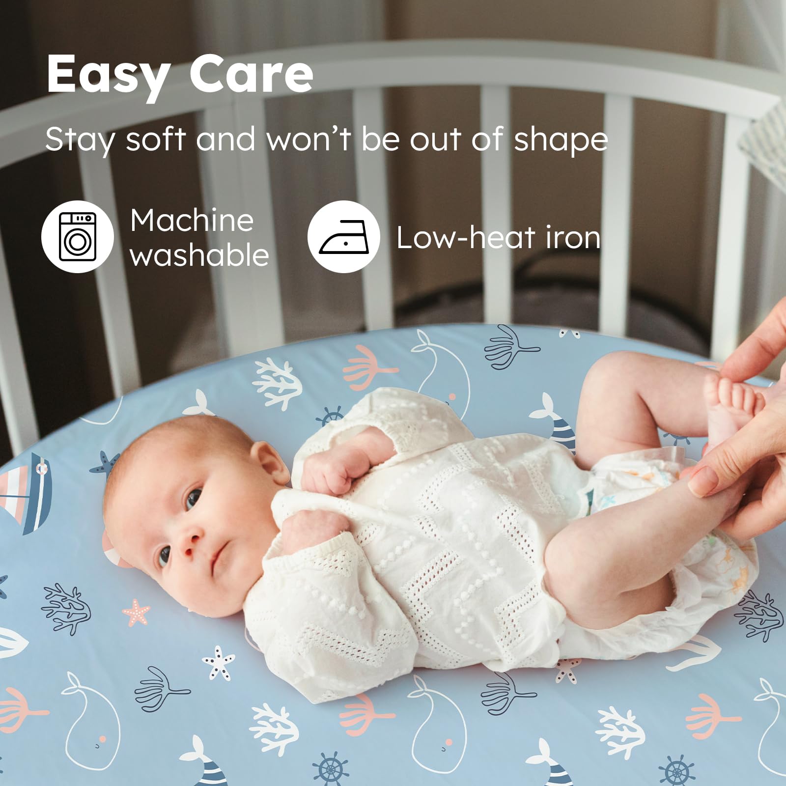 Easy Care & Sustainable: Made from pre-shrunk fabric, our bassinet mattress sheets resist fading, pilling, and shrinking, even after hundreds of machine washes. With double-stitched edges and corners, our bassinet crib sheets are built to last, staying with your baby through every stage.