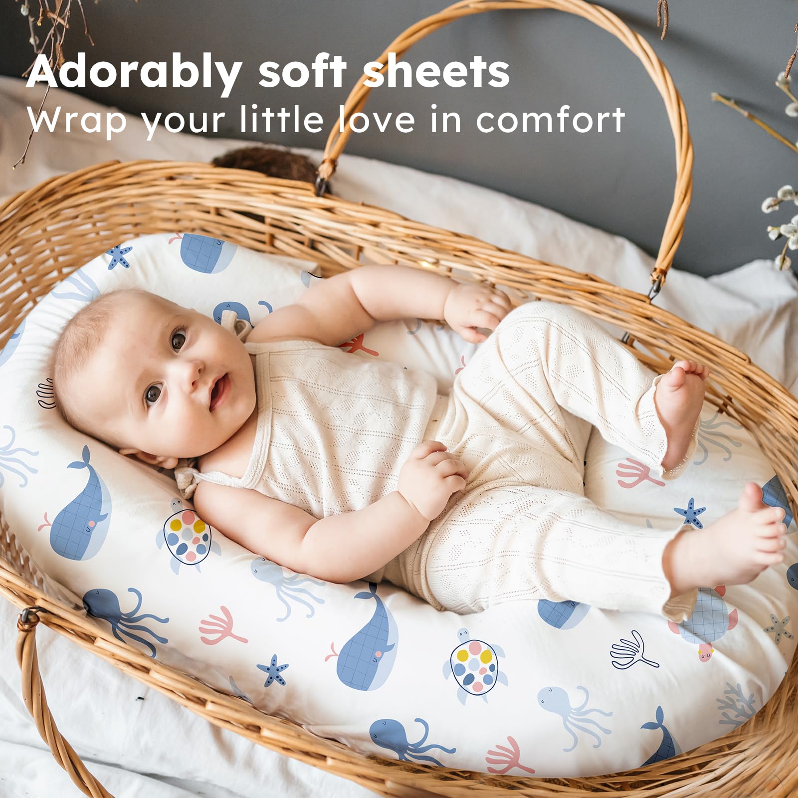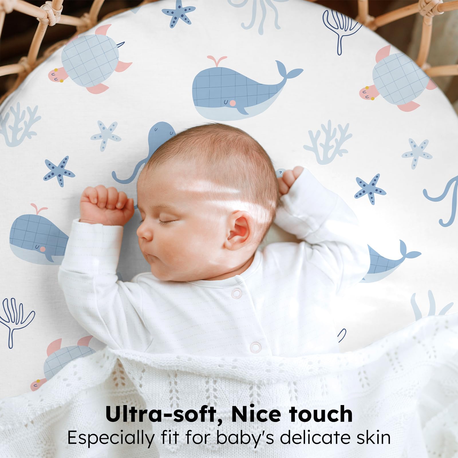 Soft & Skin-friendly Fabric: Crafted from premium microfiber with advanced knitting techniques, our baby bassinet sheets are ultra-soft and gentle enough for delicate and sensitive skin. Designed to keep your baby comfortable and relaxed, they help maintain a restful sleep environment and daytime moments full of joy.