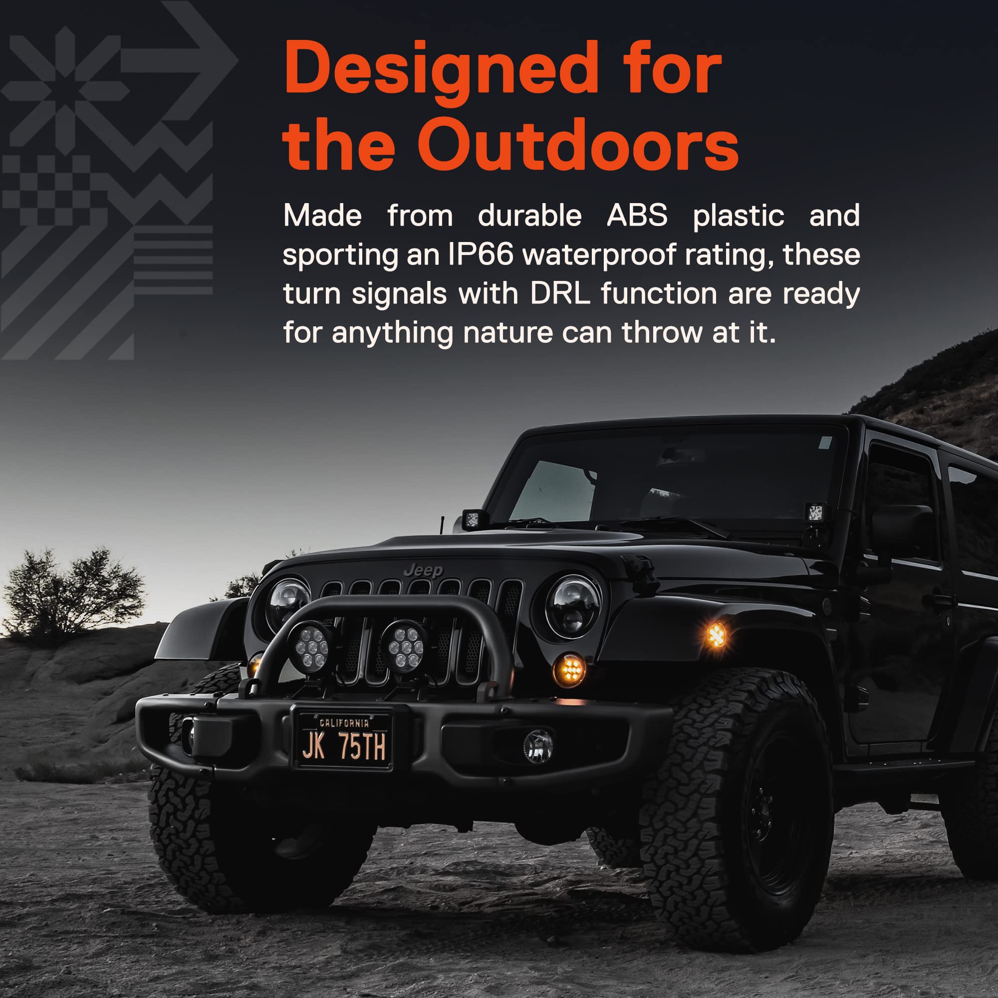 DESIGNED FOR THE OUTDOORS - Made from durable ABS plastic and sporting an IP66 waterproof rating, these turn signals with DRL function are ready for anything nature can throw at it.