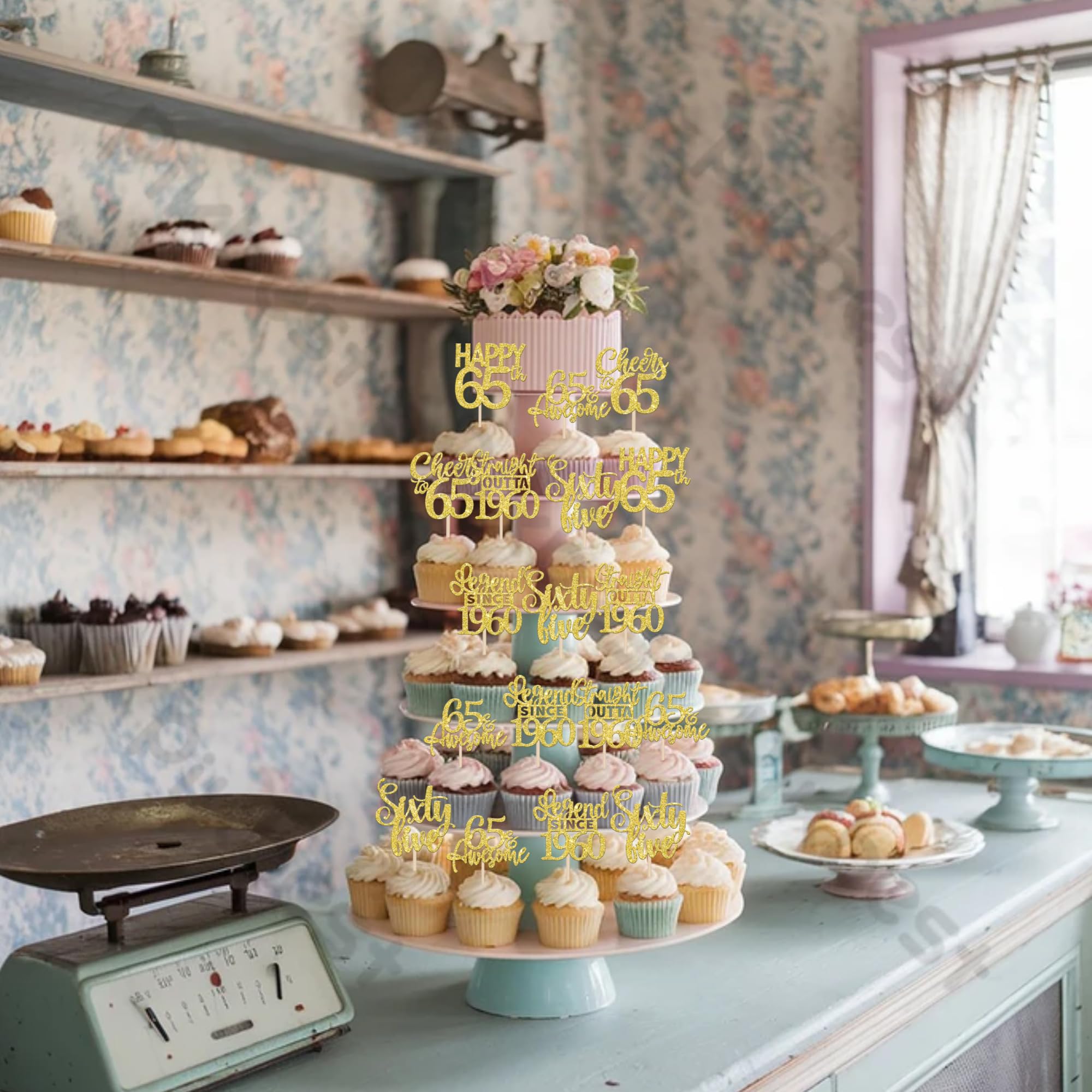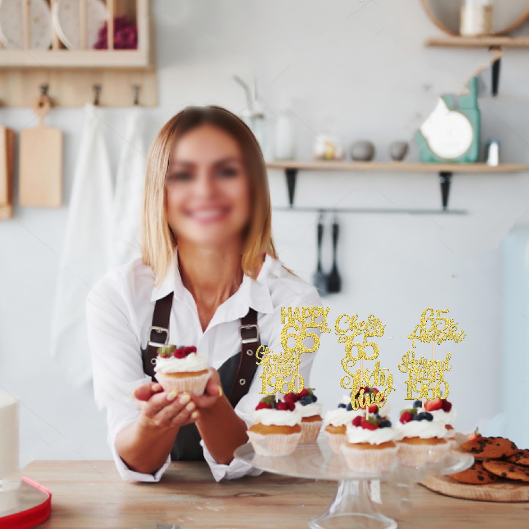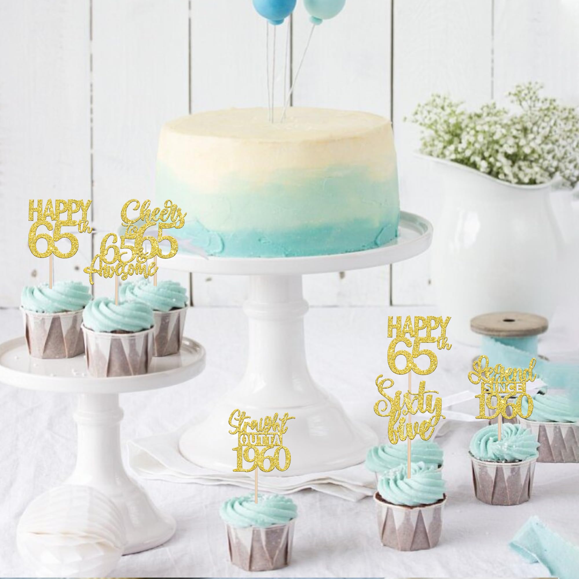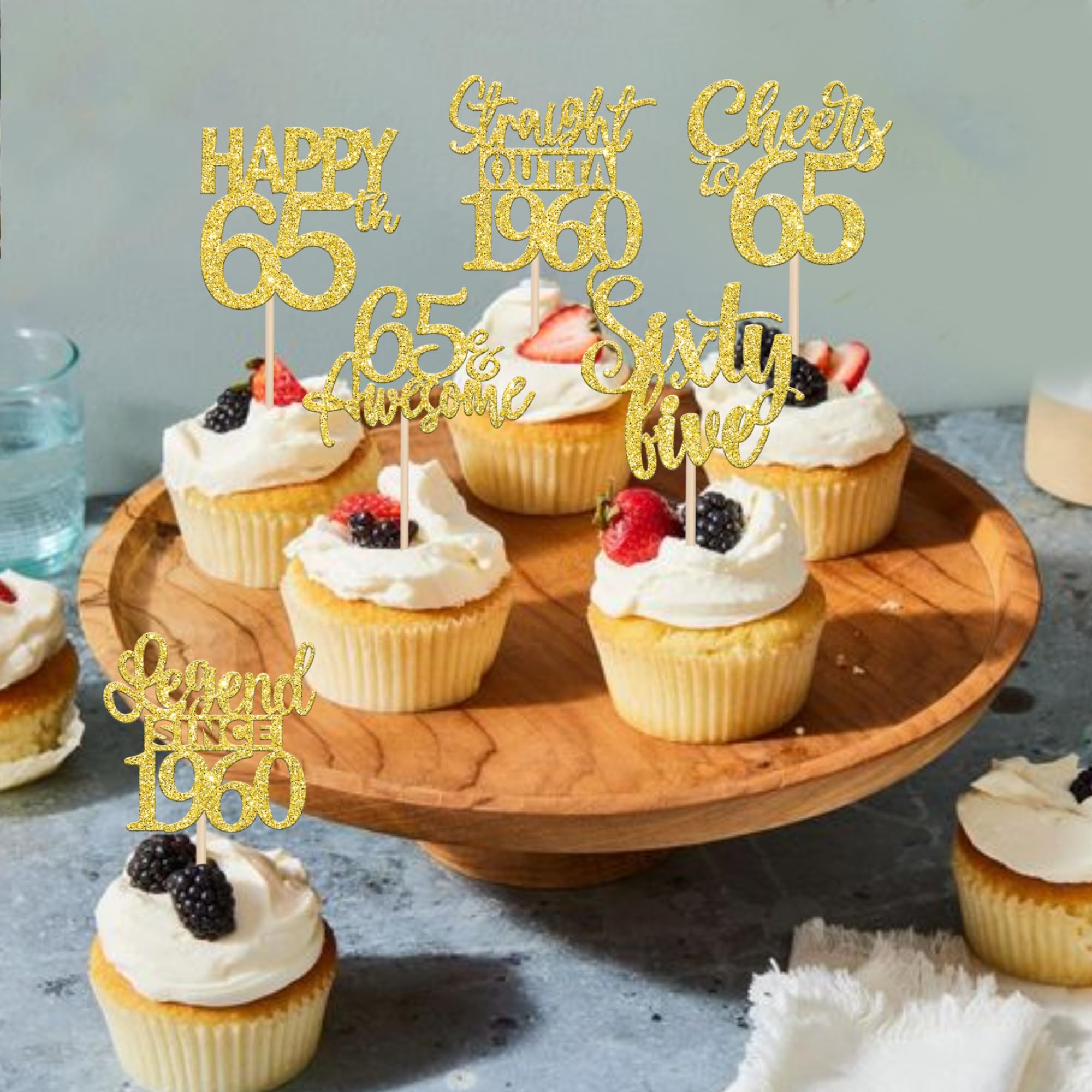 24PCS Happy 65th Birthday Cupcake Toppers Sixty Five Straight Outta 1960 Cupcake Picks Cheers to 65 Birthday Decorations Lengend Since 1960 Cupcake Decorations for 65th Birthday Anniversary Party Cake Decorations Supplies Perfect for legend since 1960 theme party, 65th anniversary theme party,cheers to 65 years theme party, 65 awesome theme party cupcake decorations supplies. Pack of 24 pcs,4 pcs of each design. The size is 2.3*4.5/ 2.4*4.5/ 2.7*4.5/ 2.4*4.7/ 2.6*3.9/ 2.4*4.7 inch ( with stick ) Made of high quality paper card stock,thick and sturdy. These straight outta 1960 cupcake toppers are one side glitter, another side is white, and they are intended for decoration only, please do not put them in oven or microwave. If the item you received has any defects, please contact us immediately.we will deal with it within 24 hours.