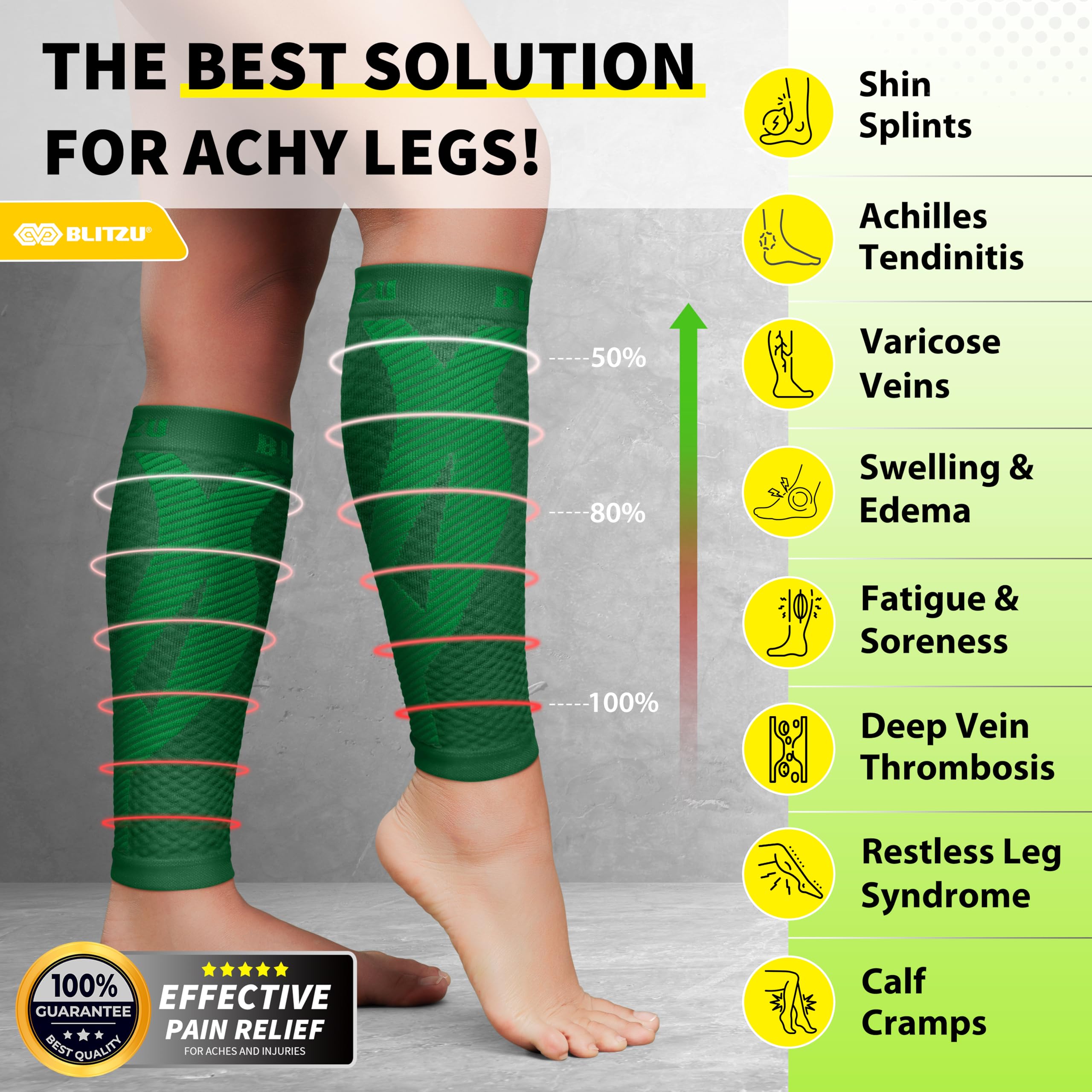 Effective Compression for Swelling & Varicose Veins Relief: The BLITZU Calf Compression Sleeves feature graduated compression to improve blood circulation, reduce swelling, and alleviate discomfort caused by varicose veins and pregnancy-related leg swelling, making them perfect for nursing mothers and individuals with circulation issues.