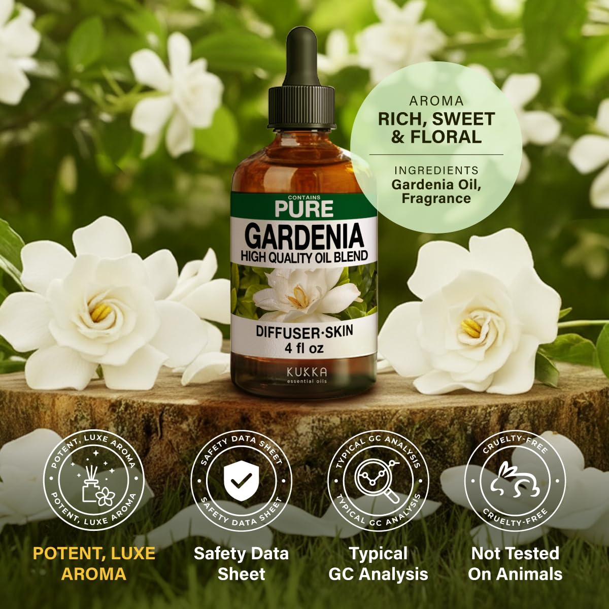 Diffuse gardenia essential oil diffuser in any room to create a serene sanctuary. Perfect for unwinding after a long day, the elegant scent fills your home with warmth and calm for a moment of relaxation inspired by a calming fragrance.