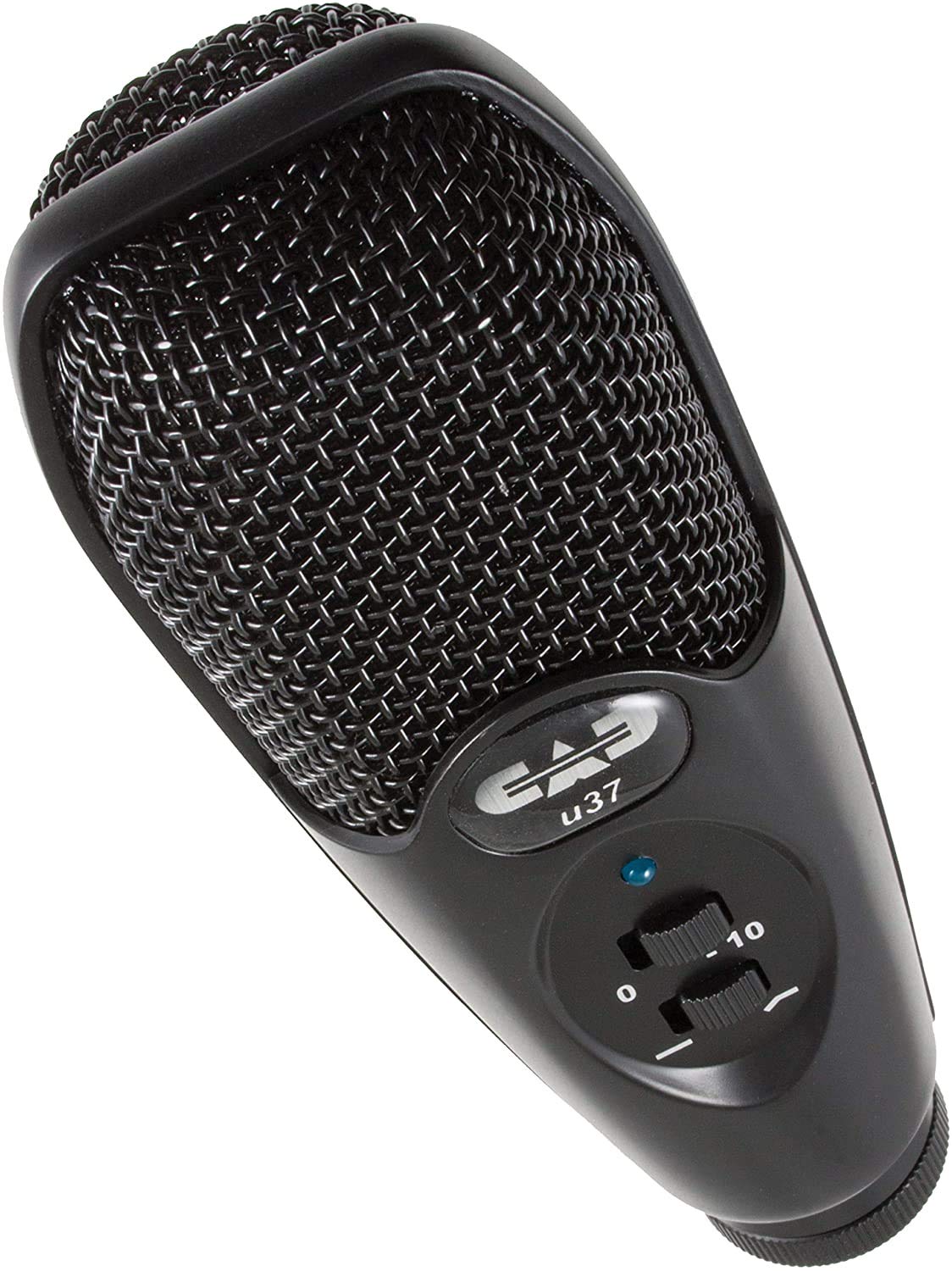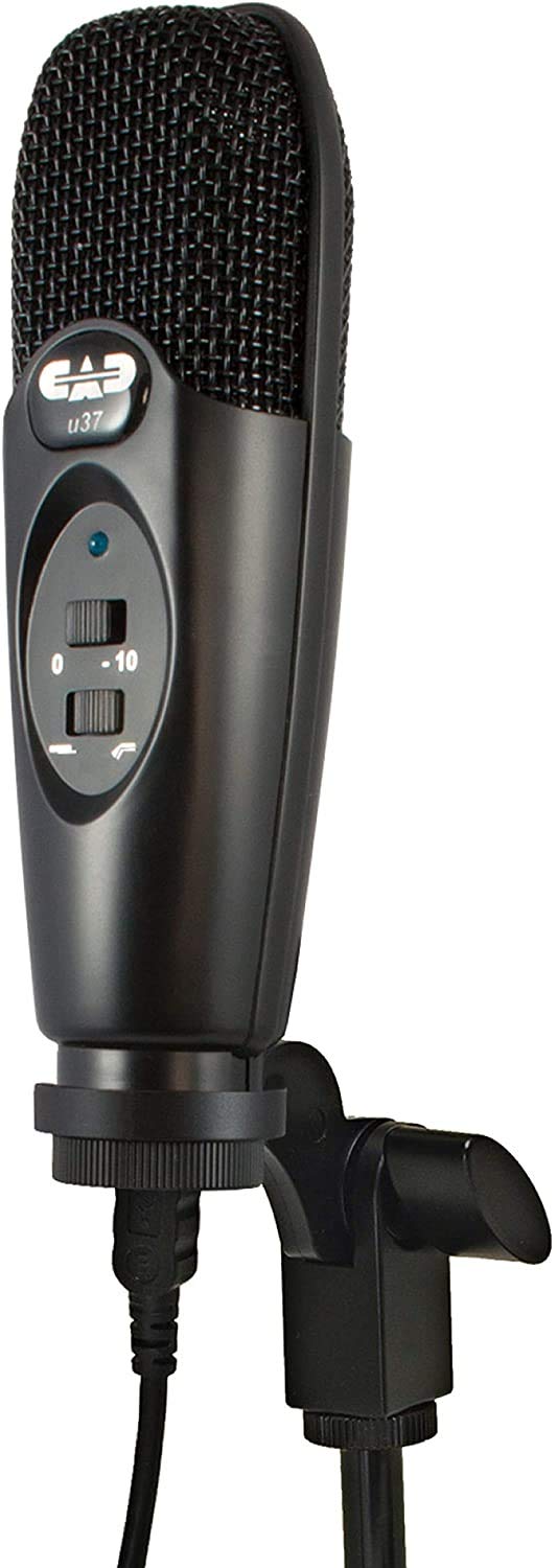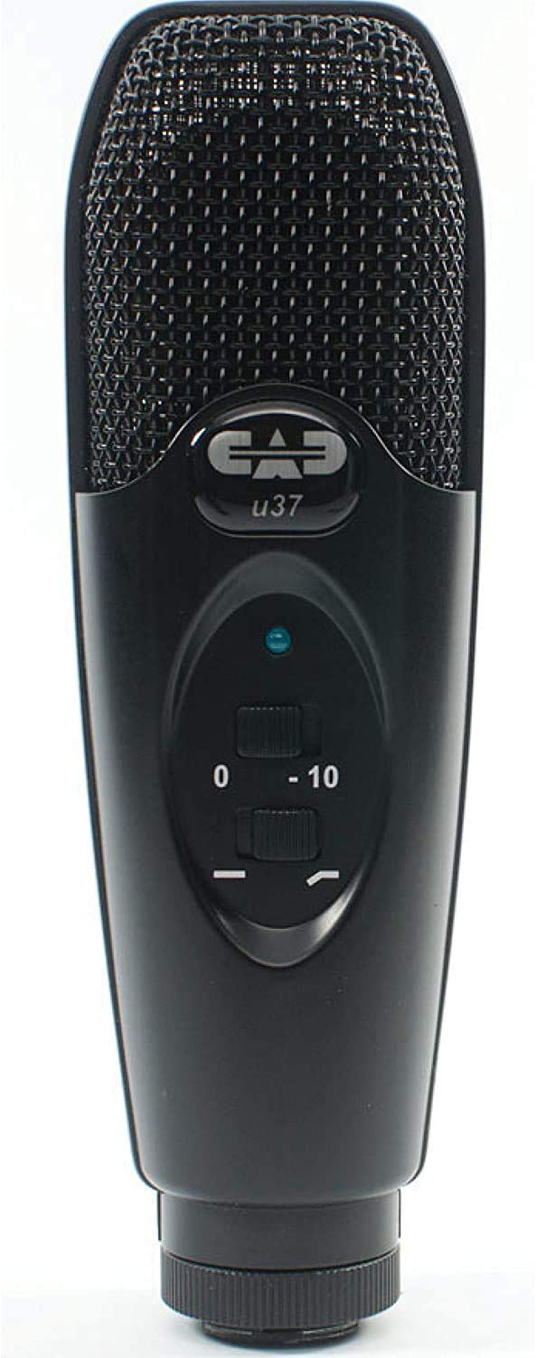 From the Manufacturer USB Studio Recording Microphone Record studio-quality audio directly to your computer Excellent for vocals and instruments Podcast over the internet Create your own audio for video Record your own songs Simply plug in and start recording Windows and Macintosh compatible Applications Studio Vocals, Speech, Instruments, Podcasts, Desktop Recording U37 Features and Benefits Large condenser microphone element for warm, rich recordings Cardioid pick-up pattern minimizes background noise and isolates the main sound source Smooth, extended frequency response is excellent for singing, speech and instruments -10dB overload-protection switch minimizes distortion from loud sound sources Bass-reduction switch reduces room noise Side-address design used by broadcast, TV and recording studios Ten-foot USB cable for flexible mic placement Desktop mic stand included Product Description Record studio-quality audio directly to your computer via USB with the CAD U37 side-address condenser microphone-a great choice for both vocal and instruments as well as for creating podcasts and voiceovers for videos. Compatible with both Windows and Mac OS operating systems, you can simply plug the U37 into your PC and start recording. The U37 has two switches on the front. The first switch allows you to decrease the sensitivity of the microphone so the sound quality is clear for extremely loud sounds. For example, the switch should be in the "-10" position for loud voices, percussion and other high sound pressure level devices. The "0" position should be used for normal voices and string instruments. The second switch on the U37 is designed to reduce pickup of deep-bass sounds. The switch should be in the "Normal Bass" mode in most cases. However, if you want to remove wind noise, ventilation noise, or decrease the low frequencies in a recording, the switch should be in the "Bass Reduction" position.