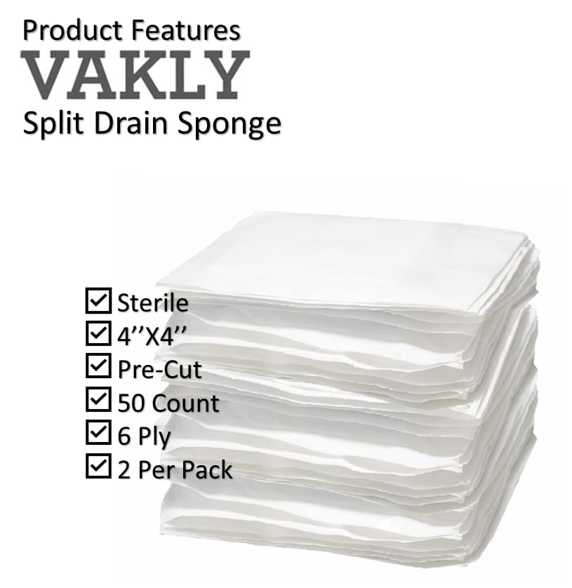 PRE-CUT SLIT - Each 4x4 drain bandage gauze comes precut with a slit going down halfway through the sponge. The split in the pad allows the gauze to quickly and easily fit around most IVs and tubes, eliminating the need for additional instruments. Having pre-split sponges allows you to change the I.V. quickly without causing too much discomfort to you patient.
