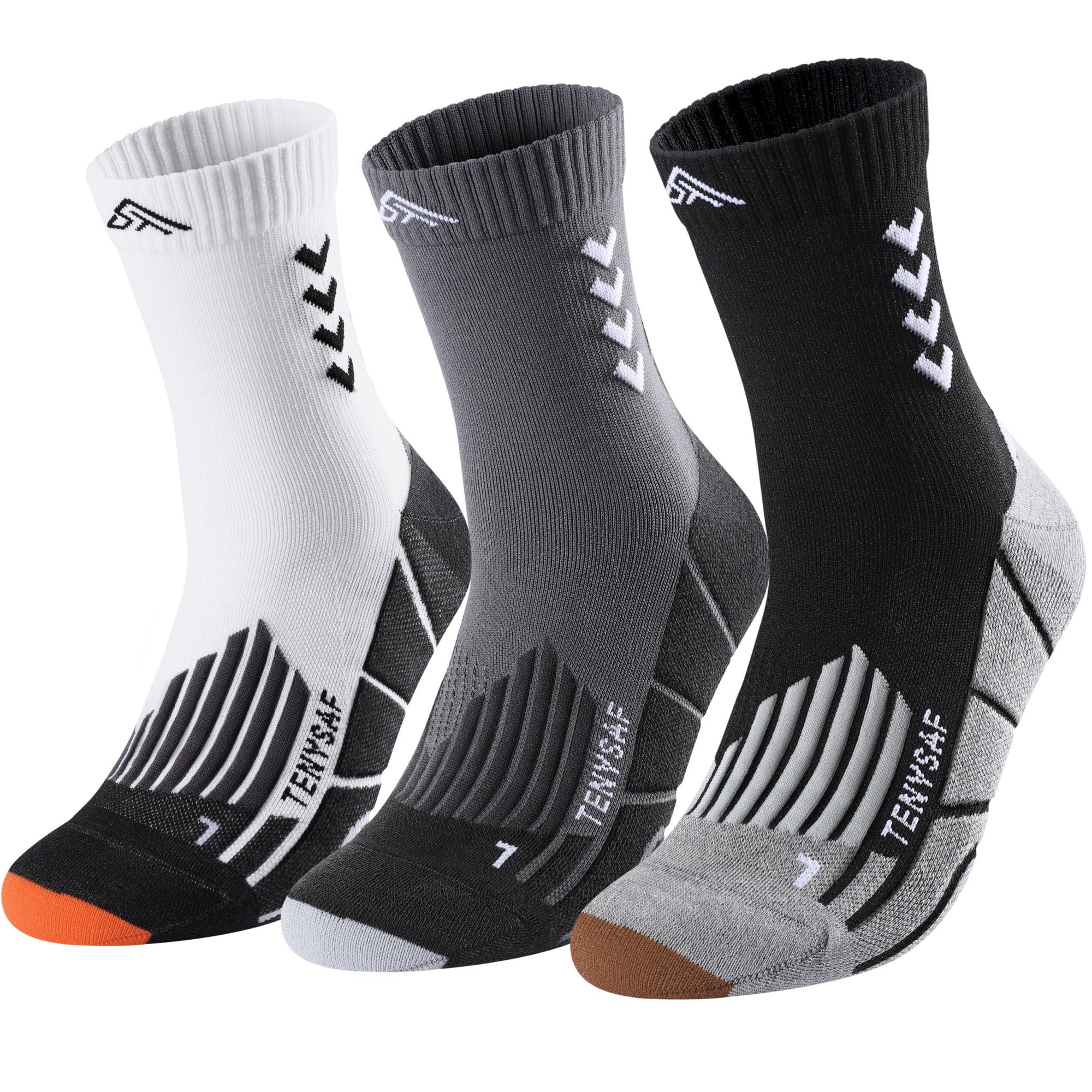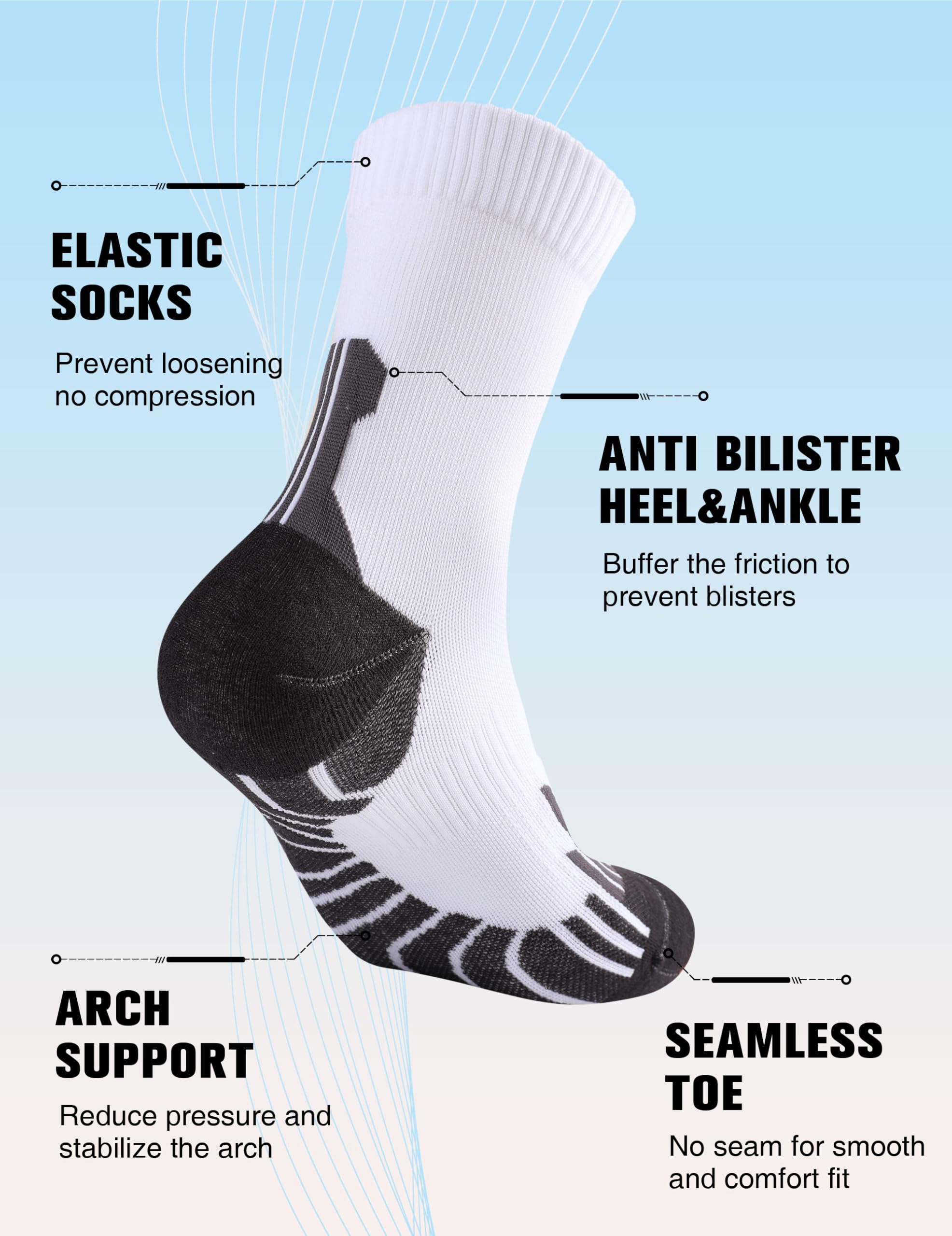 Compression & Arch Support Design:The running socks provide about 35mmHg of compression,graduated compression technology promotes better blood circulation and muscle fatigu, prevent injury. Arch support design could enhance stability and reduce stress. So you will feel comfortable and safe during running, jogging, hiking baseball and other athletic activities.