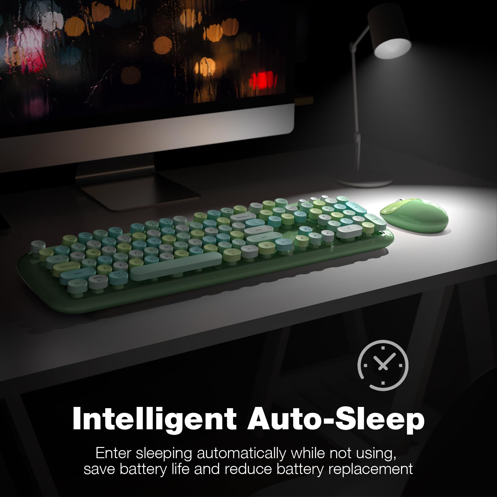 【Automatic Power Saving Functionmode】If you don't use the keyboard for more than a minute, the keyboard will auto-enter the sleep mode to save power, which greatly prolongs the battery life, Click any key or button to wake up within 2 seconds, If one day the keyboard suddenly does not work, please replace the battery and try to use it, when the battery is dying, the low battery indicator on the keyboard will remind you to replace the battery.