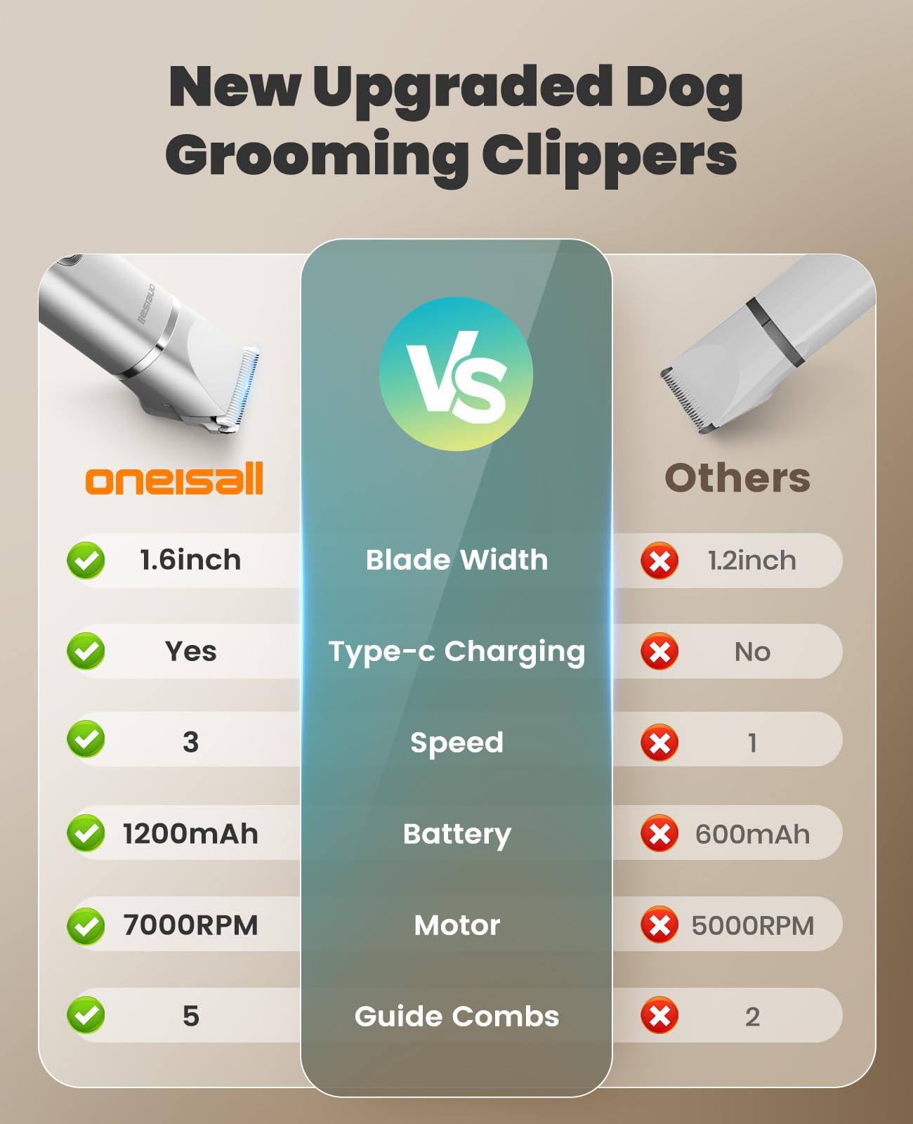 2.5Hr Runtime Dog Grooming Kit: Busy parents love this dog trimmer for grooming – 1200mAh battery delivers 2.5 hours cordless use (1.5hr USB-C charge). No mid-session shutdowns during dog paw trims or full-body shaves