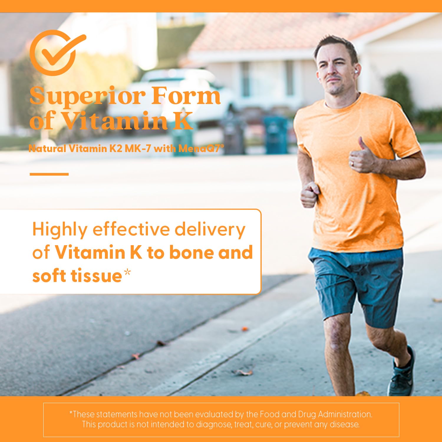 Natural vitamin K2 MK-7 with Menaq7 provides the superior form of vitamin K for optimum bioavailability and delivery to the body. Vitamin K isnβ T one vitamin, itβ S A family of fat-soluble vitamins with similar chemical structures but different metabolic properties. K2 belongs to a group of vitamin K compounds called Menaquinone, which show greater bioactivity when compared to K1, the ordinary supplemental form. K2 is absorbed more completely, remains in the body longer and delivers more benefits for bones, blood vessels and other soft tissues.*