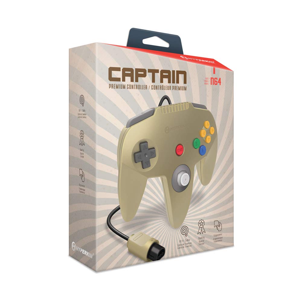 The Hyperkin "Captain" Premium Controller for N64 gives you comfortable ergonomics, perfect throw, and mash-able button strength. The 10 ft. Cable allows for easy movement around your console, and the extension port on the back lets you use memory cards and haptic feedback accessories.