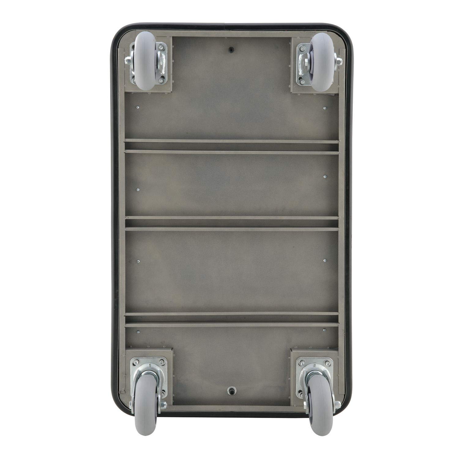 Bottom stainless steel deck is covered with a slip resistant carpeted surface to protect luggage and suitcases.