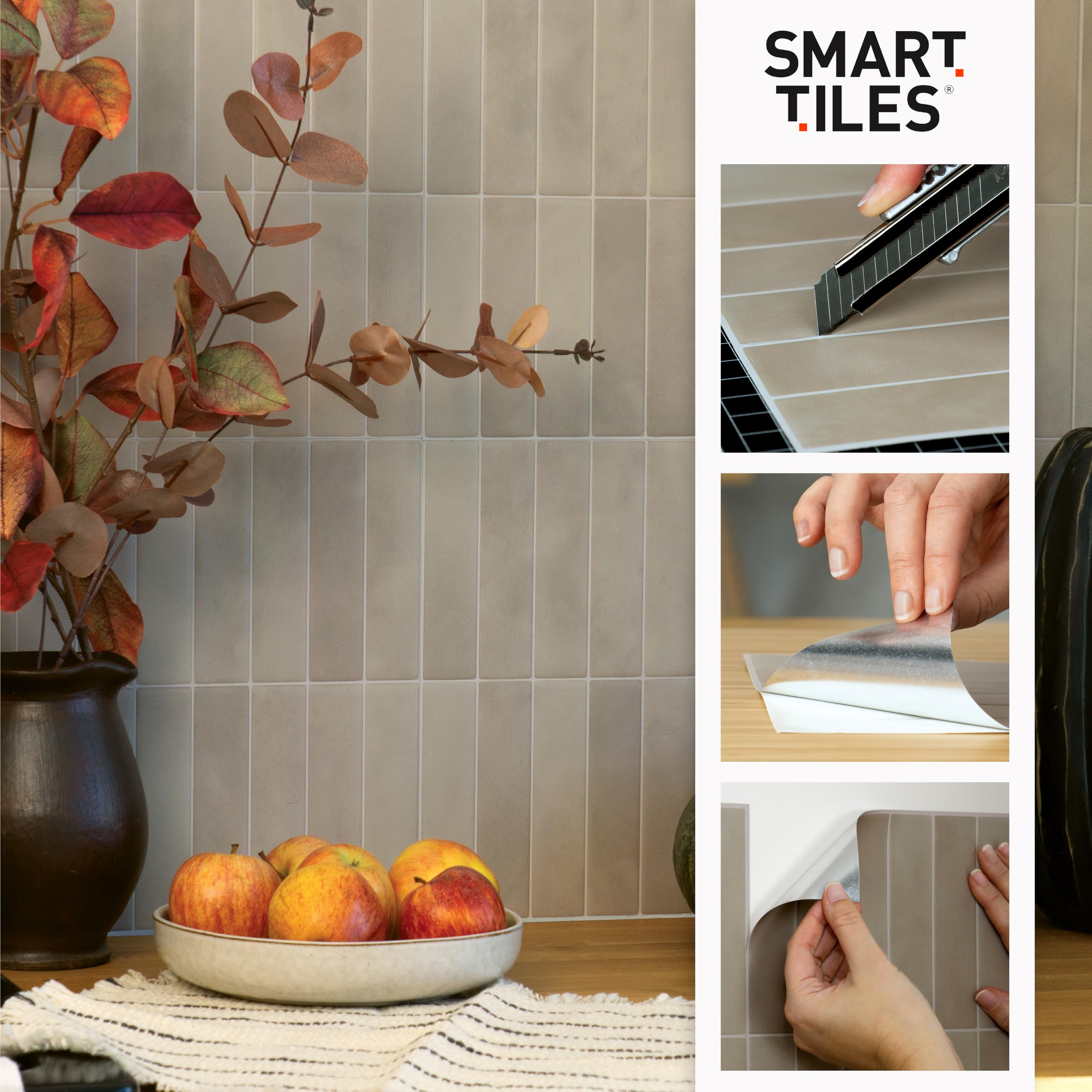 DURABLE, RESISTANT TO HUMIDITY AND HEAT: Smart Tiles are robust and resistant to heat from stovetops. They are also suitable as a backsplash in a bathroom (not suitable for inside the shower) or even around a fireplace.