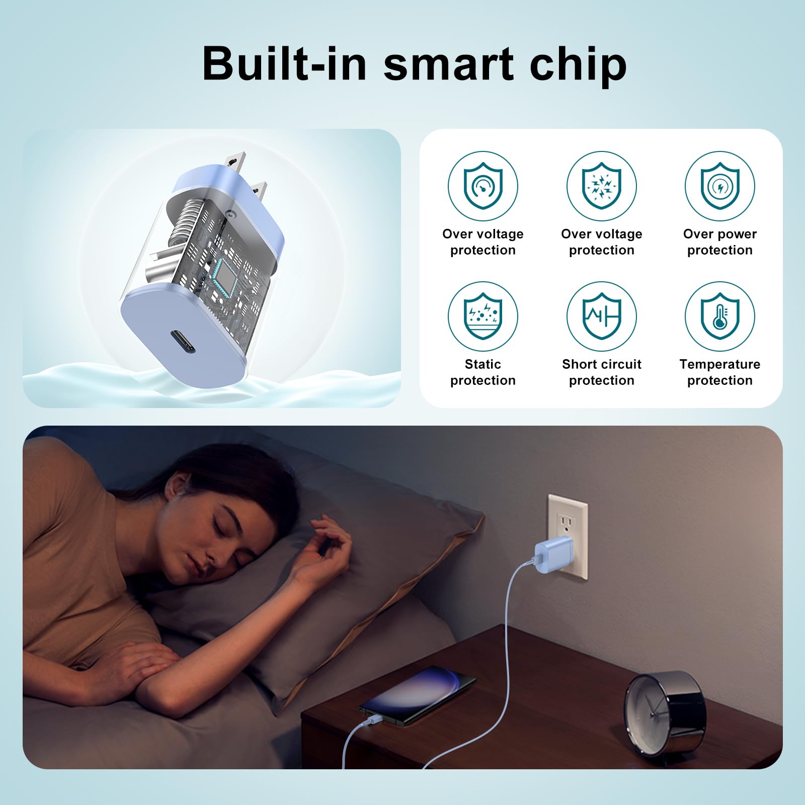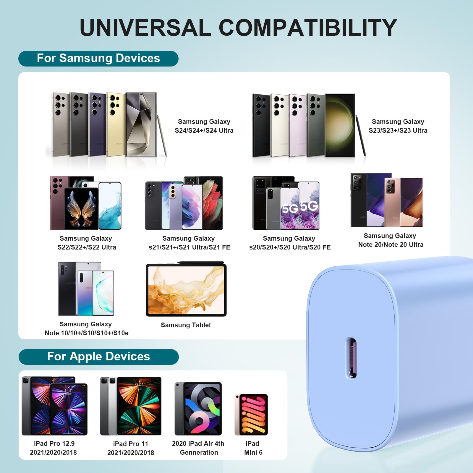 Universal Compability - The USB C android charger fast charging block are compatible with the vast majority of Android typc c devices & Samsung Galaxy S25 Ultra/S25+/S25/S24 Ultra/S24+/S24/S23/S22/S21/S20/S10 (Ultra,+),Note 20/10/9/8(Ultra,Plus),S9/S9+/S8/S8+, Galaxy Tab S10 Ultra/S10+/S9/S8/S7/S6/S5e/A8/A7, Z Fold 6/5/4/3/2/1, Z Flip 6/5/4/3/2/1, iPad 10th, iPad Pro 11/13'' (2024), iPad Pro 12.9'' 3/4/5/6th, iPad Pro 11'' 1/2/3/4th, iPad Air 6/5/4th, iPad mini 6th, GOOGLE Pixel 3/3A,1/2/3/4(XL)