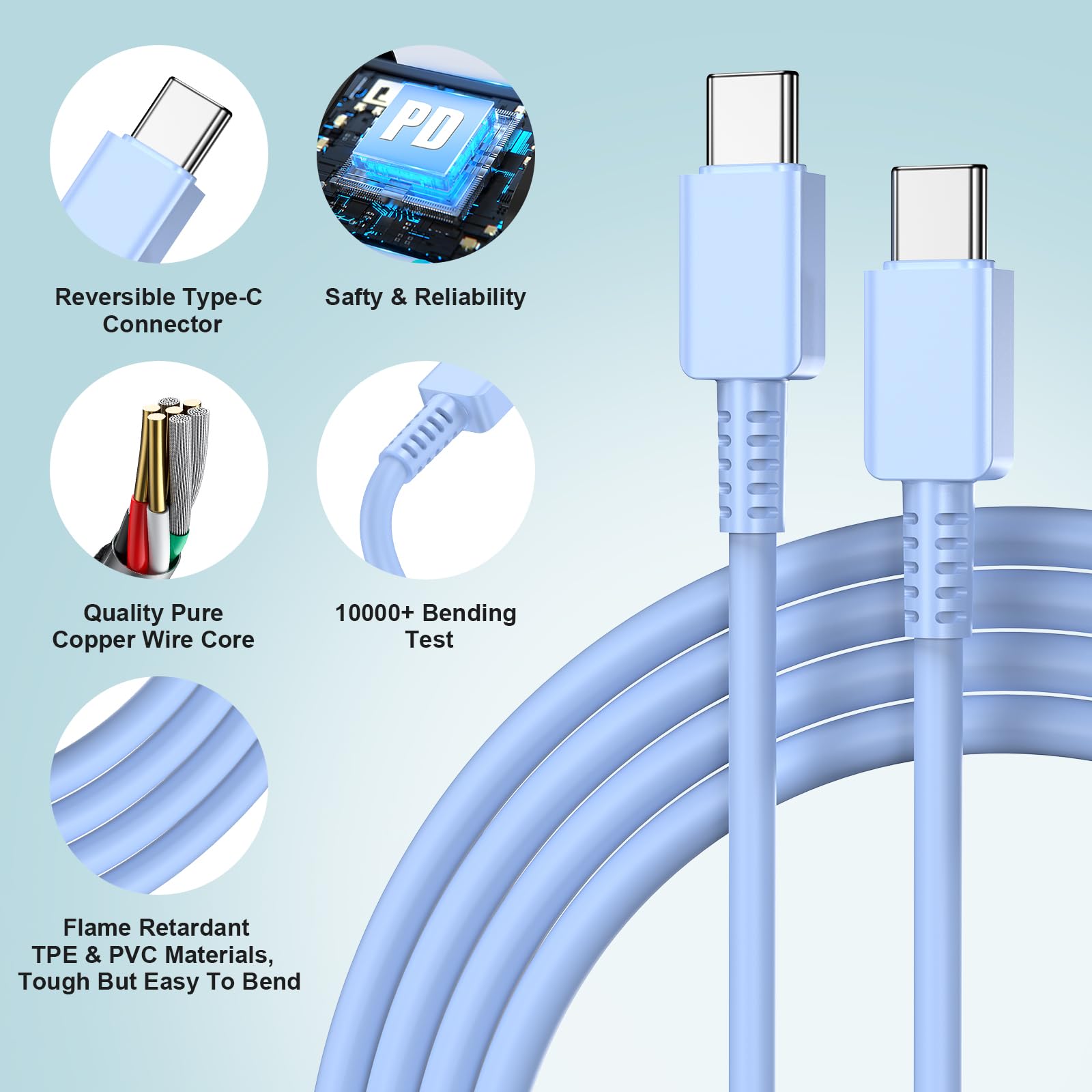 Safe & Reliable - With the intelligent chip inside, this type c charger fast charging block & USB C to USB C cable fast charging for SAMSUNG GALAXY can match the current required by the Samsung device automatically and protect them safe from Over-Charging, Over-Current, Over-Voltage, Over-Heating & Short-Circuiting