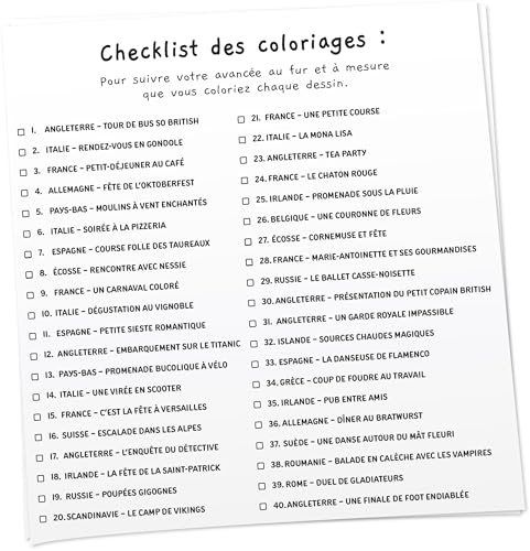 Offrez-vous une pause créative et relaxante avec Europe cosy ! Un papier premium 170 g, épais et résistant, compatible avec les feutres à alcool, les acryliques, les stylos gel... pour colorier en toute sérénité. 40 illustrations originales et authentiques, réalisées par Jade Summer. Une image par double page pour protéger vos coloriages et éviter que les couleurs ne traversent le papier. Une expérience cosy et relaxante, parfaite pour prendre le temps de se poser et de se détendre. Partage tes coloriages avec notre communauté Dessain & Tolra !