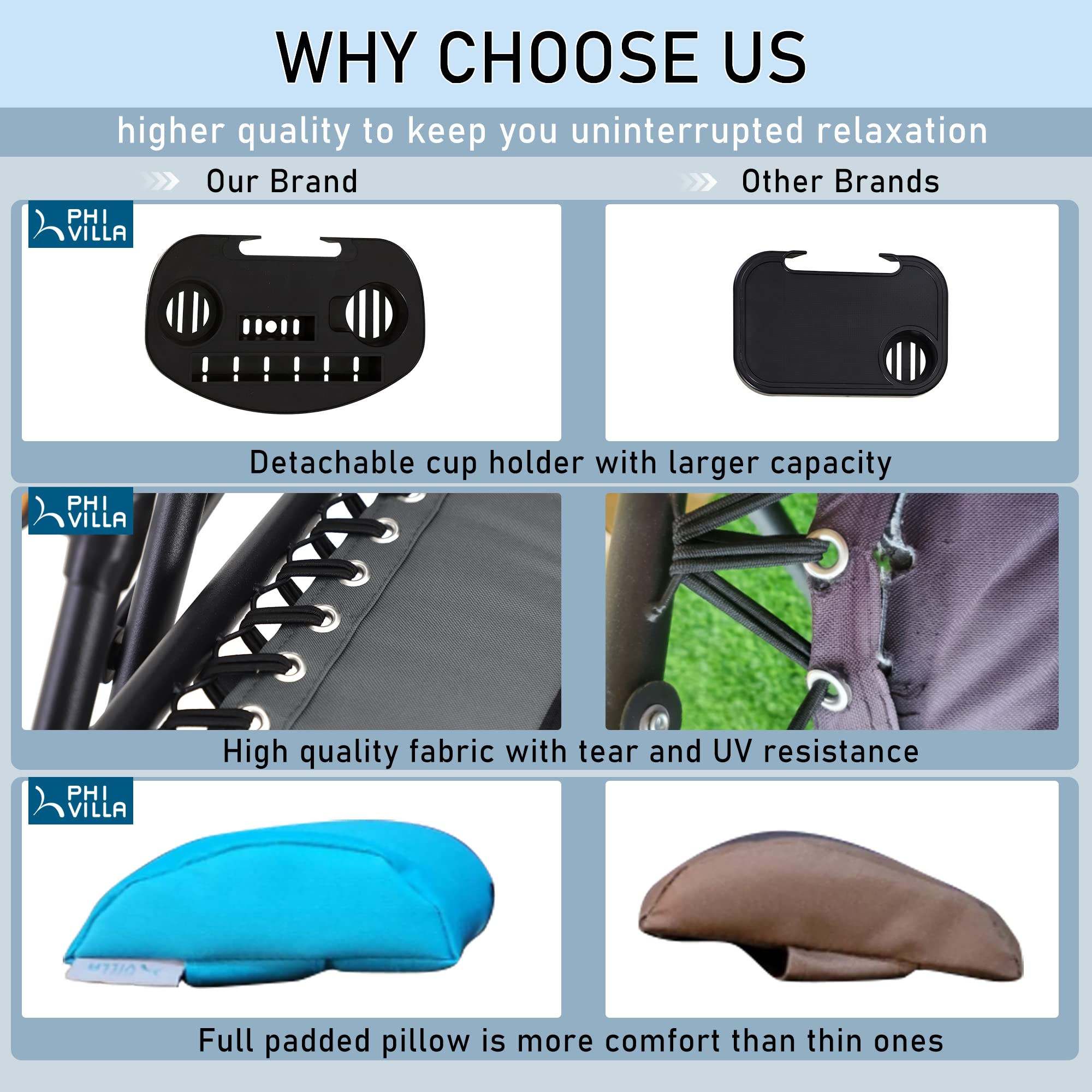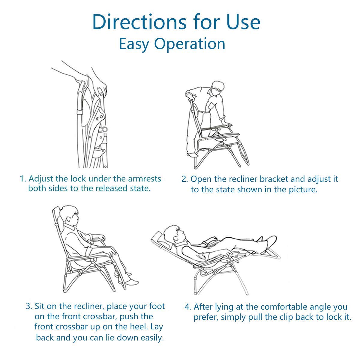 Functionality: The Anti-Gravity Recliner has a locking system for smooth 0 to 170-degree adjustments and an adjustable headrest for comfort. It fits individuals up to 6’2" with a setup size of W30" x D35.4" x H44.9". When folded, it measures L30" x W5.9" x H36", perfect for outdoor use at the patio, beach, or park