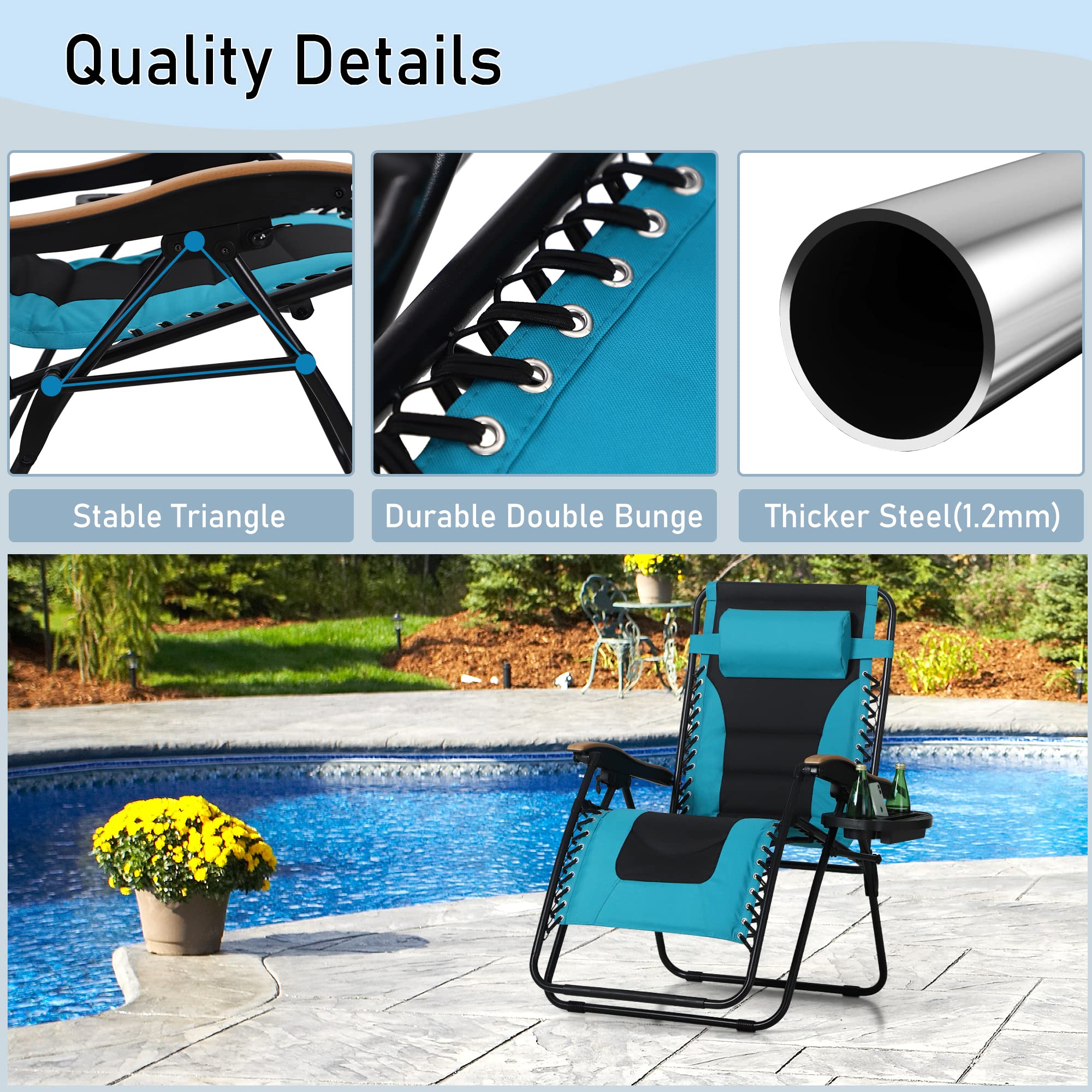 Reliable Construction: Our recliner chairs are built with 1.2mm thick steel tubes featuring an eco-friendly coating for superior rust resistance, supporting up to 400 lbs. The smooth, burr-free tubes and stable triangular design provide a secure and enjoyable seating experience