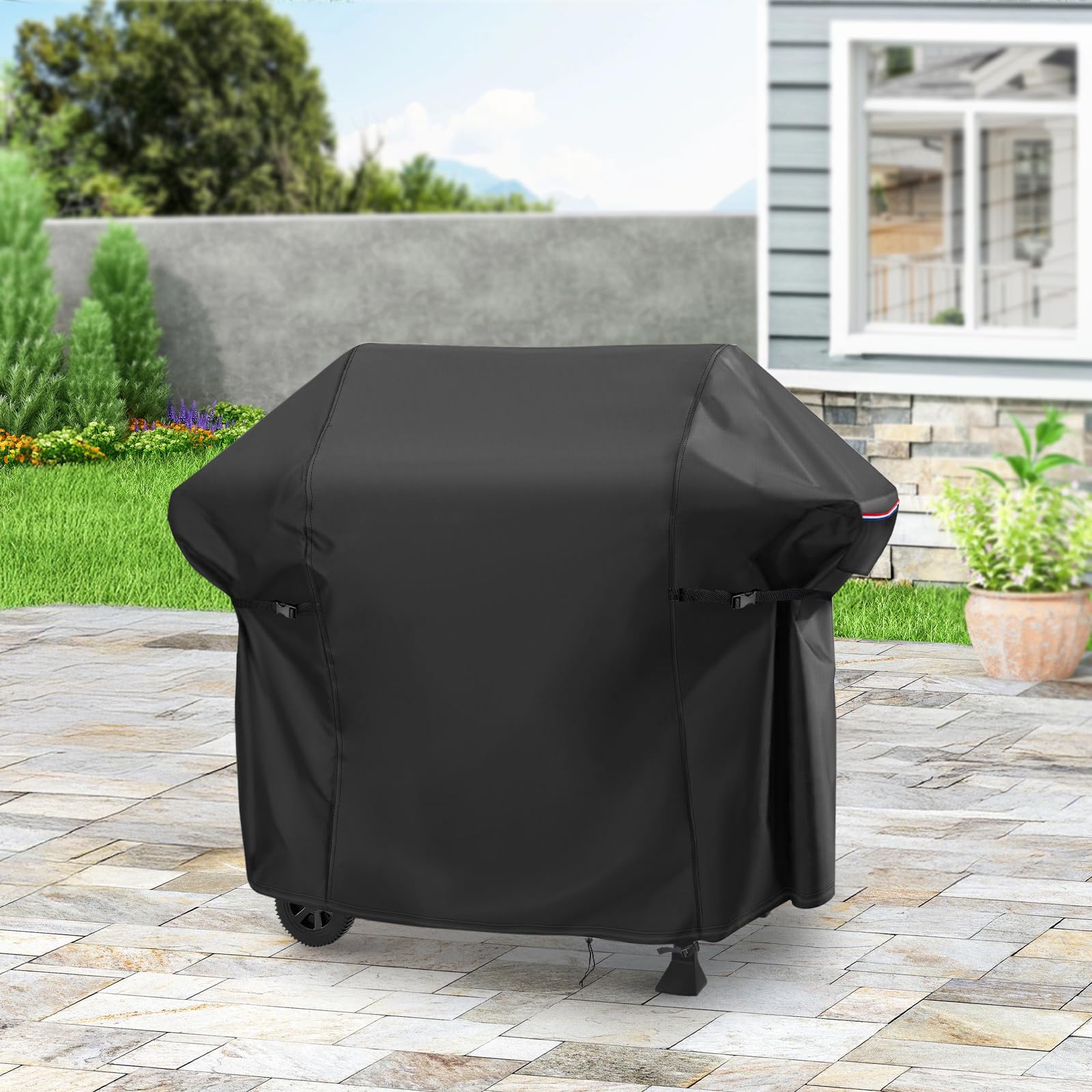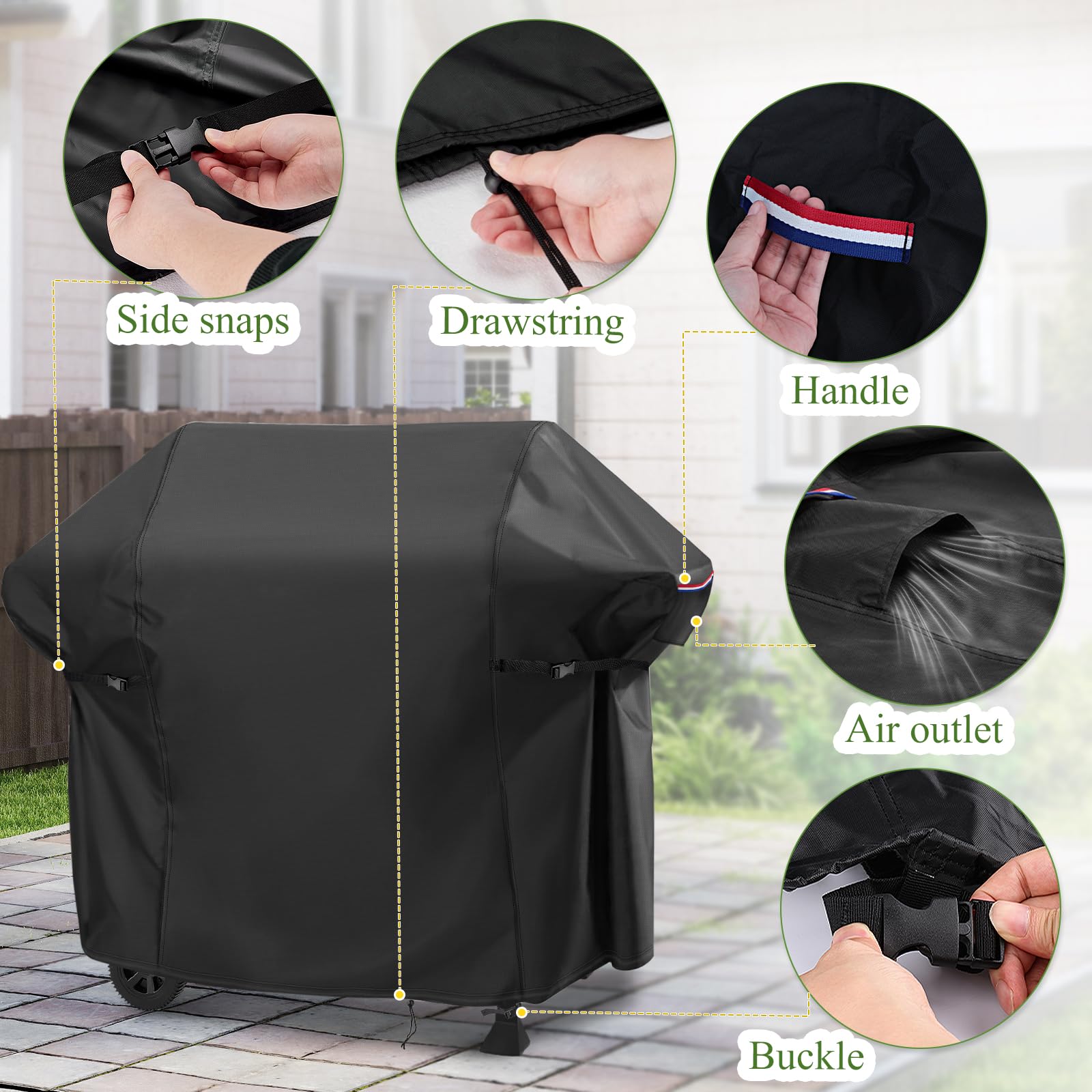 Drawstrings & Buckle & Handle: Elastic cord allows the cover to fit better with the grill. Adjustable buckle on the grill egs for better extra stability, so you don't have to worry about the impact of windy weather. The handle is convenient for your daily use