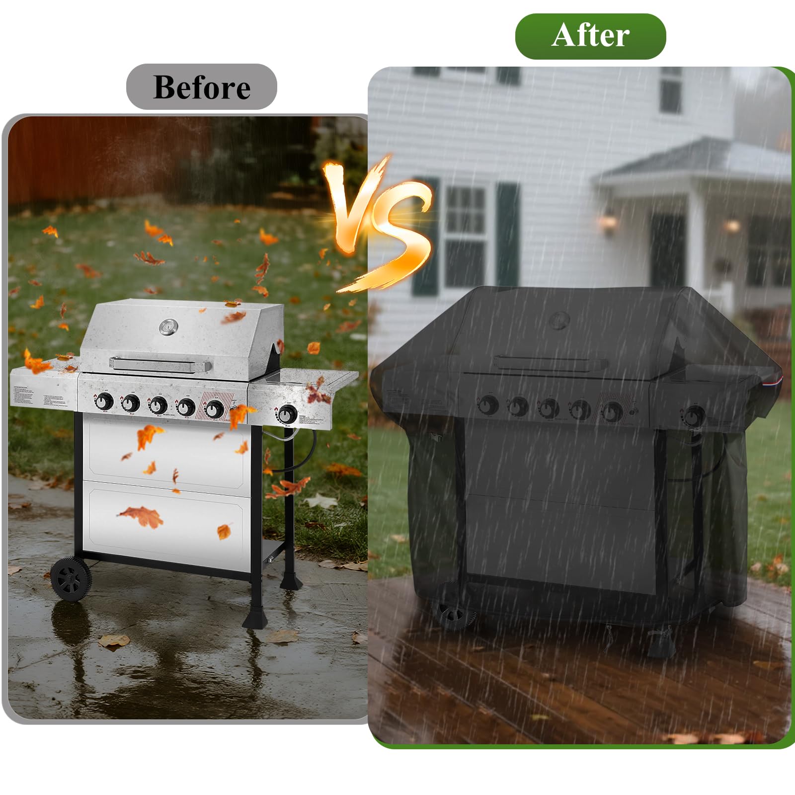 Upgrade Durable Material: Made of Heavy duty oxford polyester with water resistant PVC coating, resists UV, tearing and cold cracking, durable and long-lasting. Gives your griddle all year round protection, always looks like new