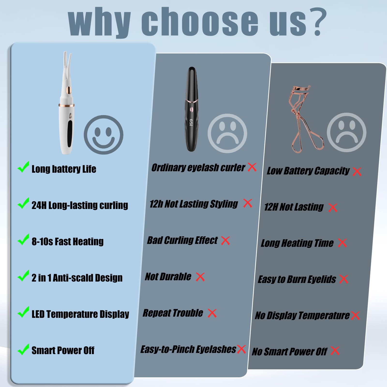 Adjust Temperature Mode - Our heated eye lash curler comes with 3 temperature settings from 150°F to 190°F to gently curl your lashes and create stunning curls for amazing curling effect for different types of eyelashes, will not frizzing or pinching them