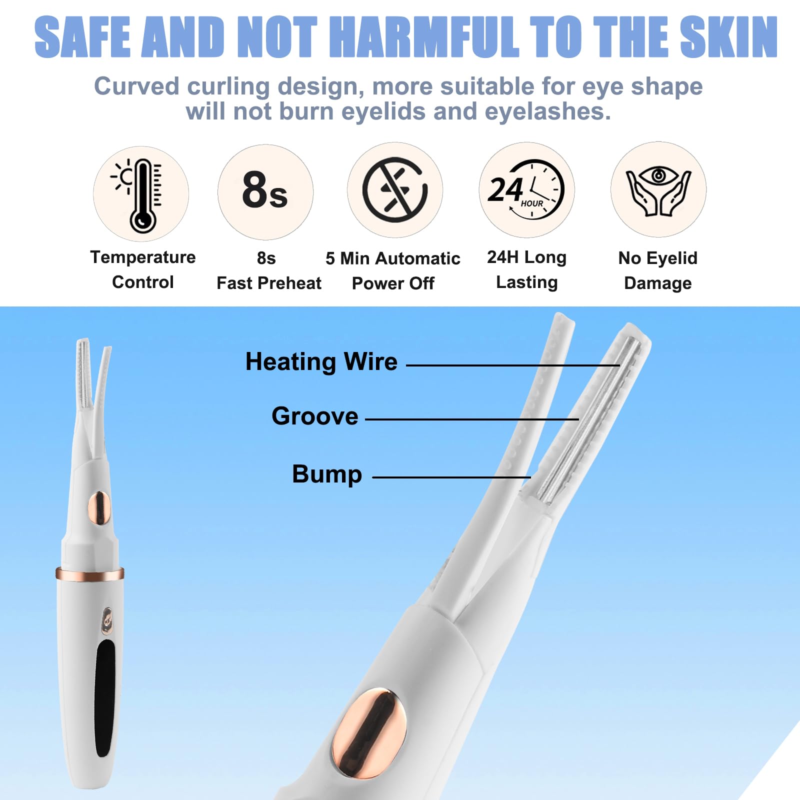 Quick Natural Curling - The heated eyelash curler can fast heat up within 10s, creating a perfect natural curling eye makeup quickly without crimping or pinching. Lasting for 24 hours