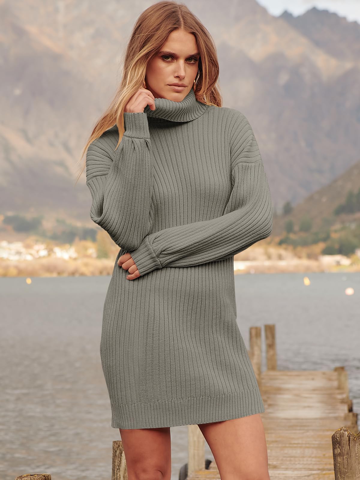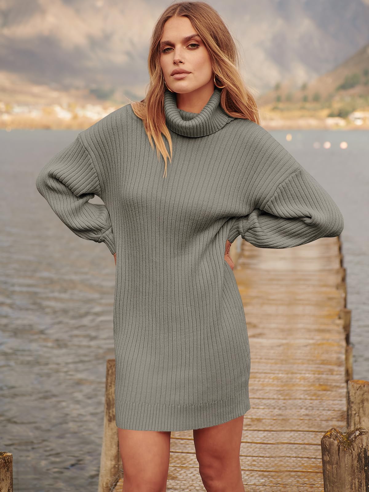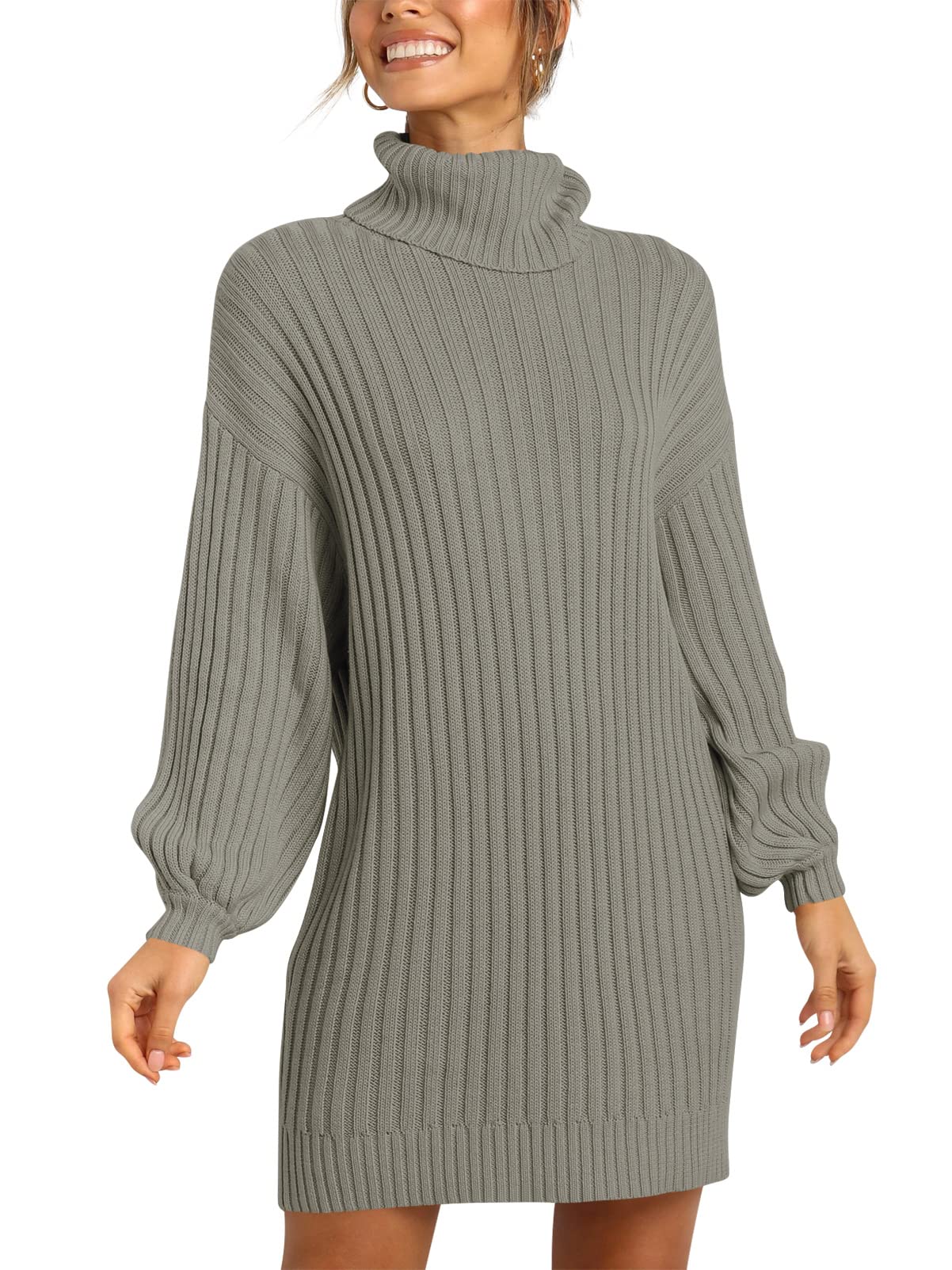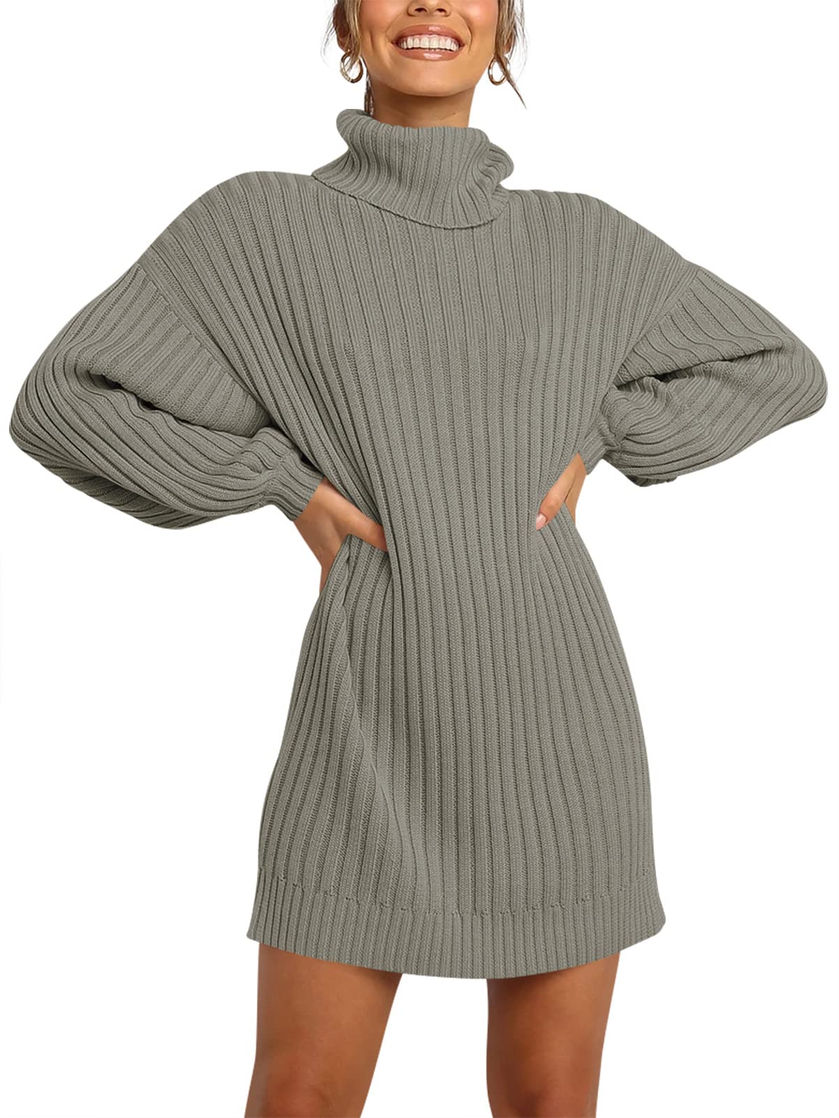 Features - Women's sweater dress, turtleneck neck, batwing long sleeve, knitted. This women's oversized dresses perfect for daily wear outdoor wearing, dating, casual, office; Great with high heels, boots etc