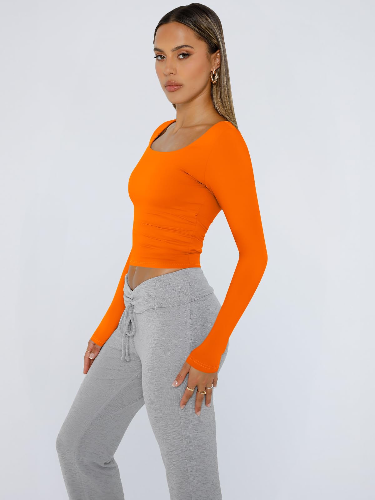 Soft Material: Crafted from a blend of 88% polyester and 12% spandex, this long-sleeve top is lightweight, ultra-soft, and highly stretchable. It offers a second-skin feel, making it an ideal layering piece or standalone top