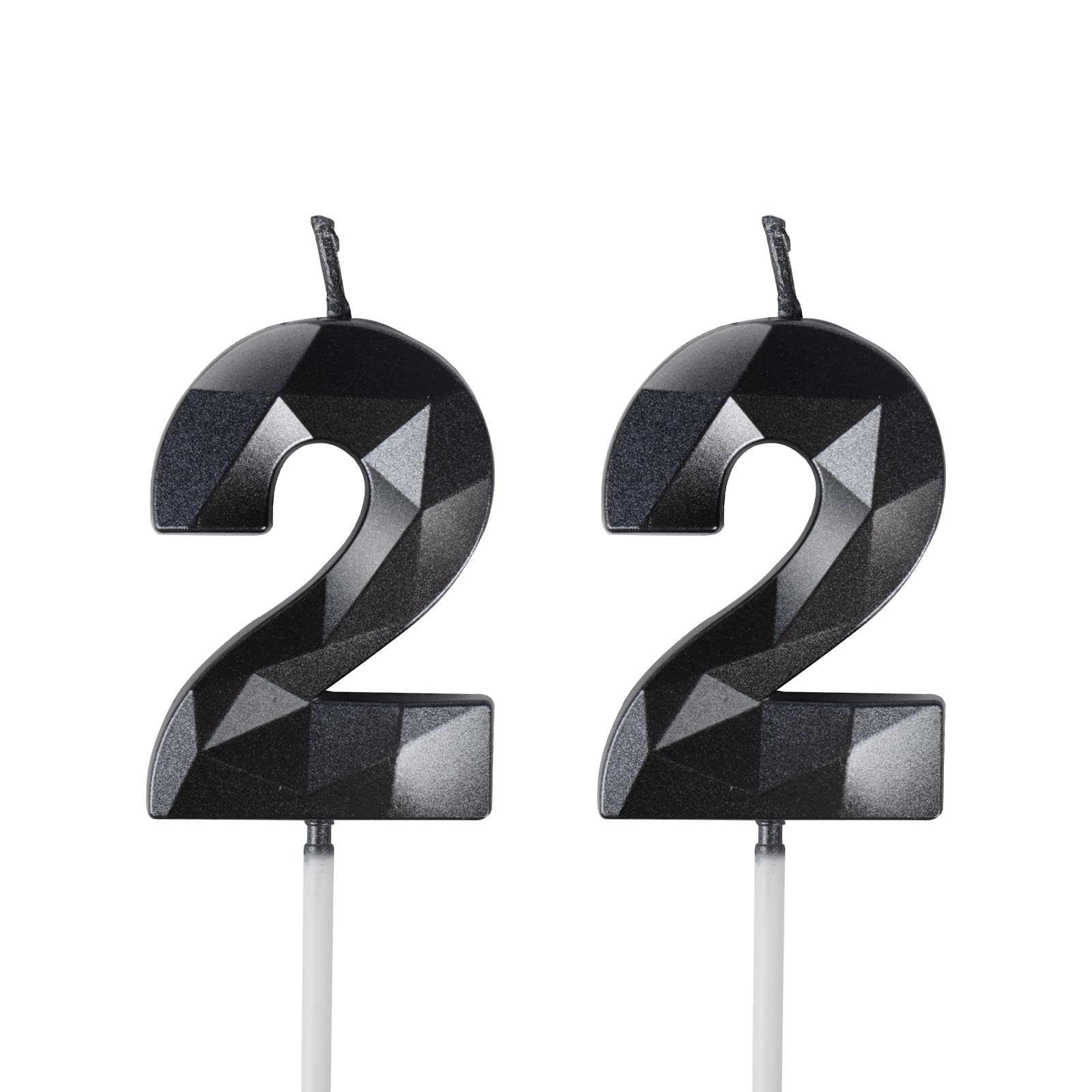 22th Birthday Candles,Number 22 Candles,Black Happy Birthday Candle for Cake,3D Design Cake Topper Decorations for Women Men Birthday Party Wedding Anniversary Celebration Supplies Features: 3D Delicate appearance: The happy birthday cake candles are meaningful for you to celebrate your birthday and nice cake topper decoration for embellishing your cake and cupcake, bright glow for creating romantic atmosphere and adding a touch of elegant. Adapt to the venue: Ideal cake decoration for many occasions, such as birthdays, pet birthdays, baby showers, anniversaries, retirement parties, family reunions, weddings, Hawaiian parties, even Christmas, must-have items for party cake, bring you memorable and meaningful party. Specifications: Quantity: 2 piece Material: wax, plastic Candle length: approx. 5 cm/ 1.97 inch Total length: approx. 11.5 cm/ 4.5 inch Color: as pictures shown Package includes: 2 x Black Number 2 Numeral Cake Candles Warm notices: Please allow little error on the size due to manual. Do not leave the lighted candles unattended. Please place candles out of reach of children. And please do not light candles on or near flammable materials. Please keep the candle away from the fire when not in use, when burning, adult's supervision is needed.