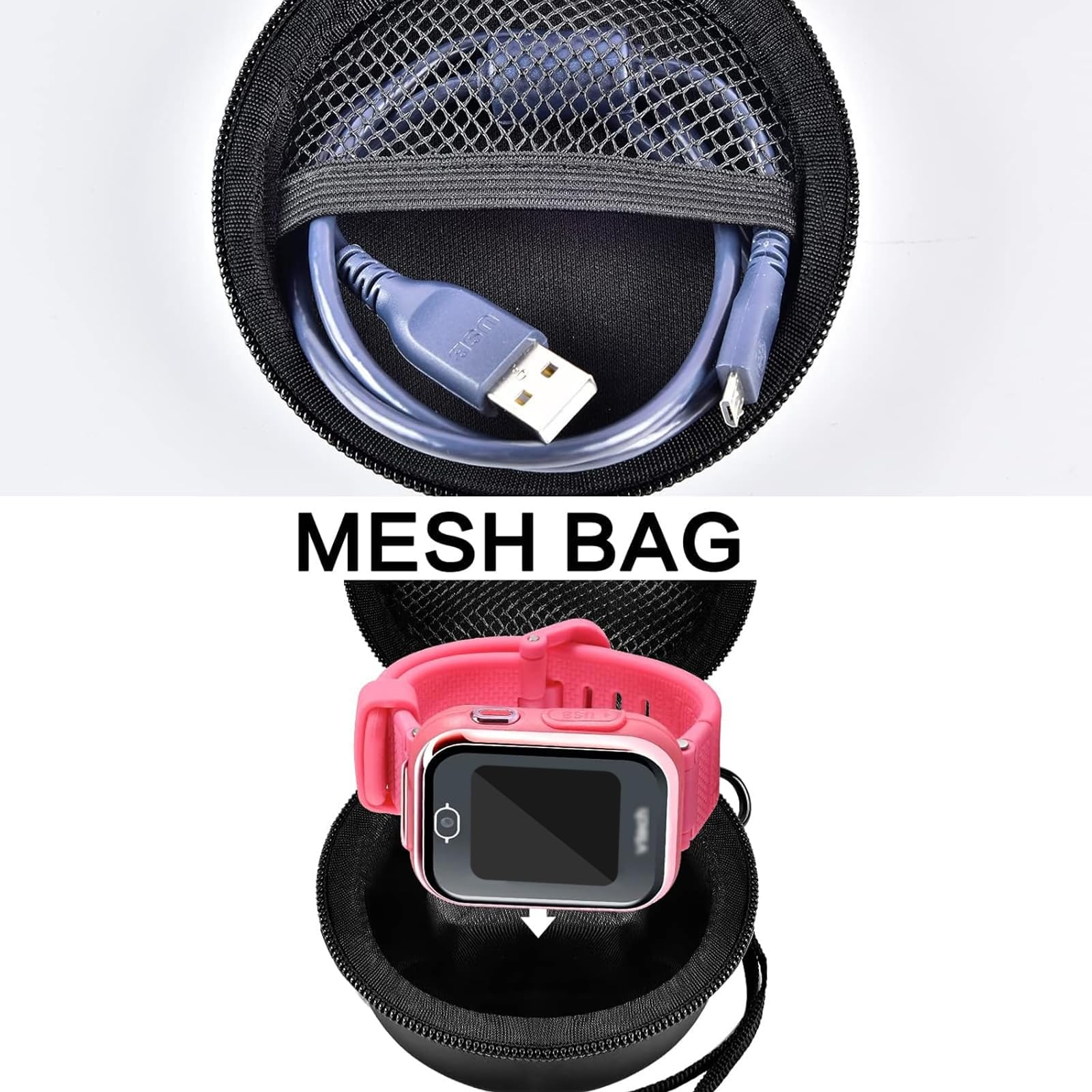 Kid Smart Watch Case Ffor: Kids watch case is specially designed for VTech KidiZoom smartwatch DX3, DX2/ for Gizmo Watch/ for watch 2/ for Accutime/ for Minecraft/ for Marvel/ for Nickelodeon/ for VTech PAW Patrol/ for DC Comics/ for Little Tikes Tobi/ for PlayZoom Kids Smart Watch. Kid smart watch storage bag with half mesh pocket is nice for storing USB cable and other accessories. For vtech smart watch holder dimension: 4. 33 x 2.55 inches. (Box only)