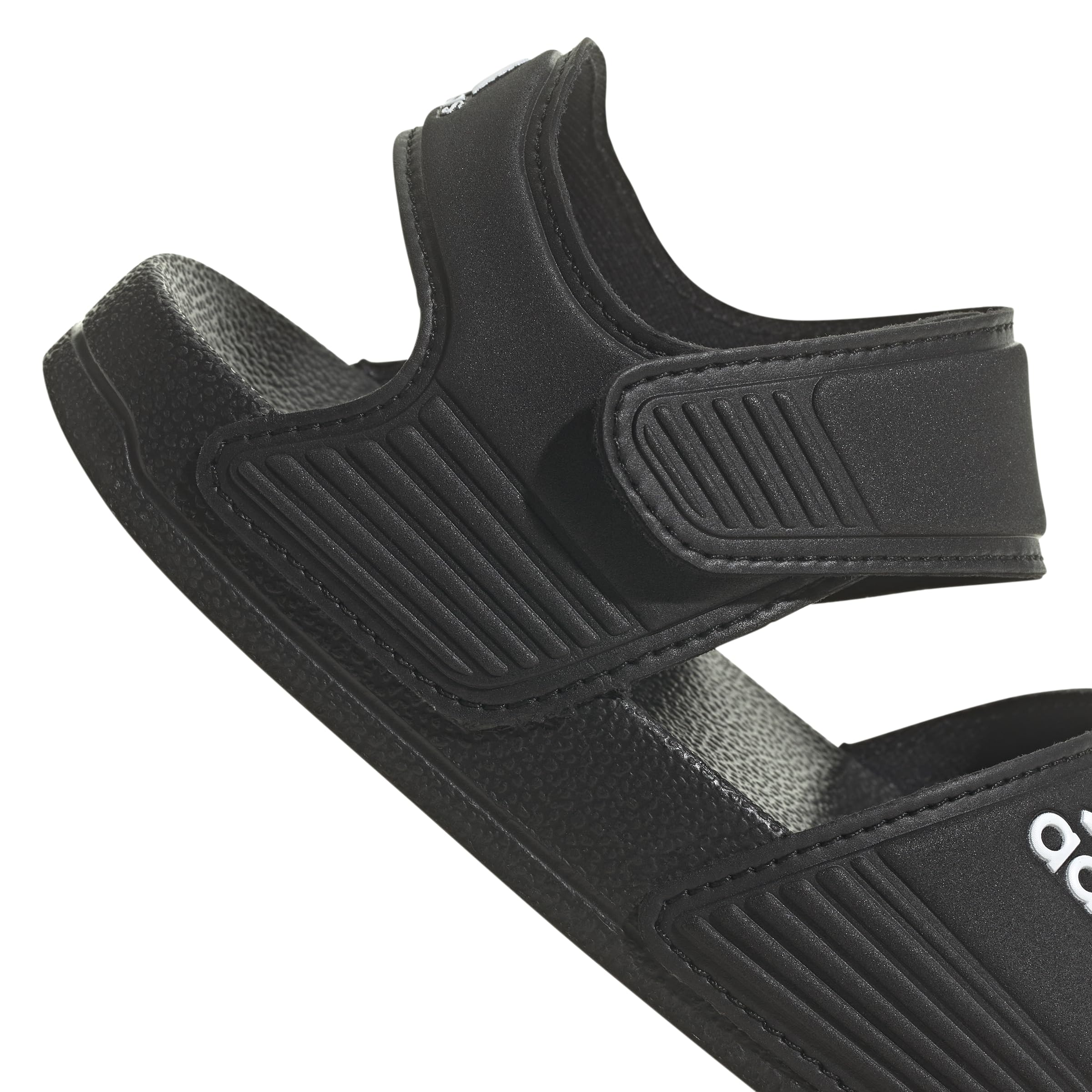 Description Built for summer days and wet conditions. These quick-drying adidas swim sandals are inspired by the classic adult Adilette, with an ankle strap giving a snug fit for active kids. The lightweight design won't weigh them down as they move through their busy day.