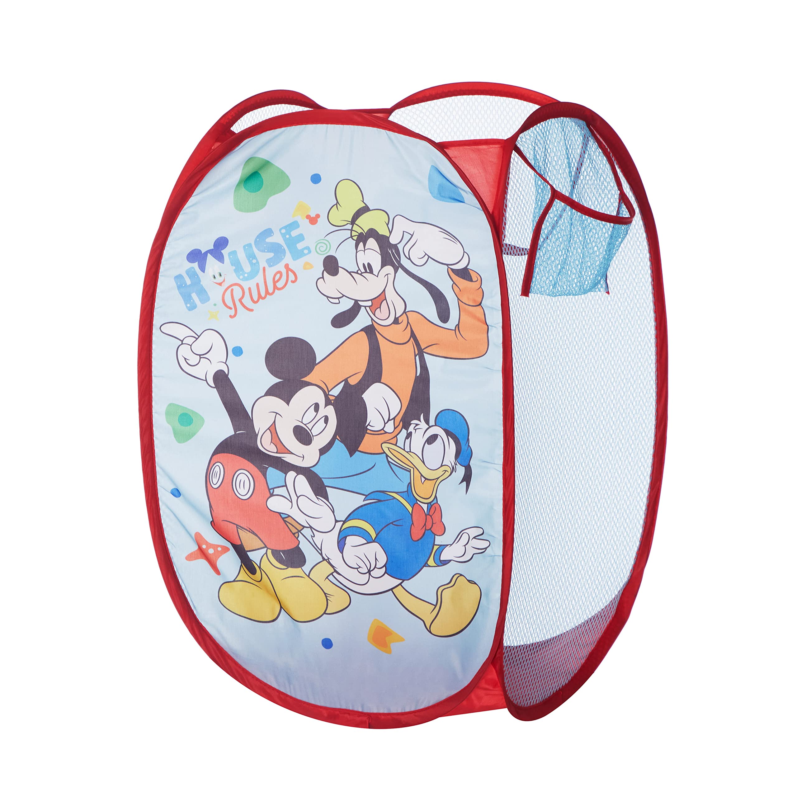The Mickey Mouse 10" Storage Cubes make a perfect addition to your child’s bedroom, closet, or playroom. The storage cubes are an easy way to maintain organization while adding a playful accent. Your little one will love to put away all their toys, books, clothing, and more in these spacious storage cubes featuring his or her favorite character. It's made of a soft canvas material with a sturdy steel frame and reinforced carry handles. Collapsible and lightweight, our storage cubes are perfect for storing just about anything. When not in use, it can fold down flat and be tucked away. This item is for storage only and should not be used as a toy. Children should not play inside of the cubes. Keep away from open flame. Easy to clean using a damp cloth. Discontinue use if frame is bent or broken. Do not drag storage cubes on the floor.