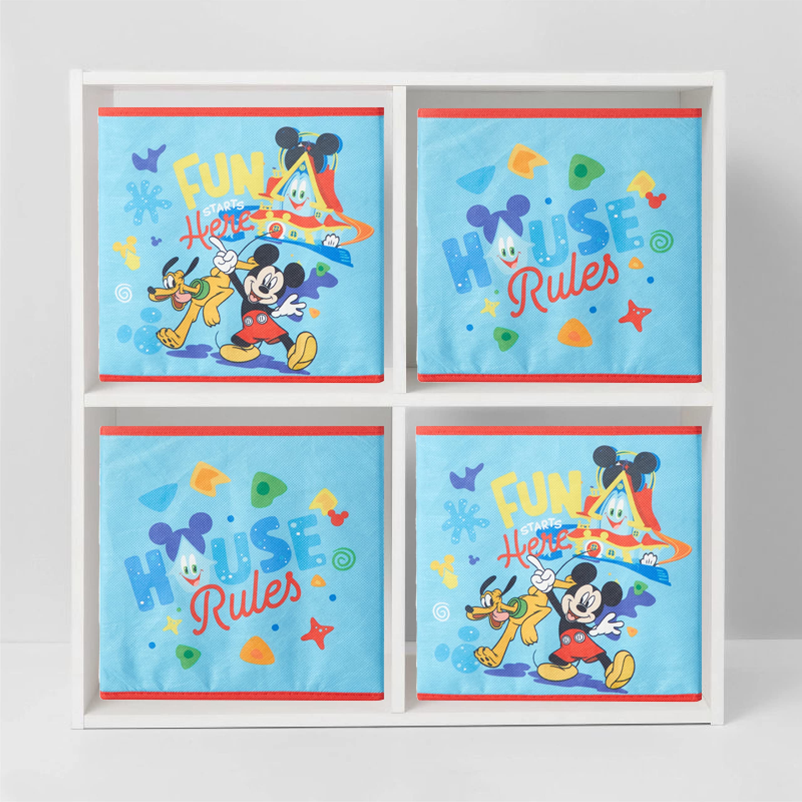 MATERIAL: The Mickey Mouse storage cubes are made of soft and durable non woven poly material. This material is strong, durable and long lasting. Cubes can also easily be folded down flat and be tucked away when not in use.