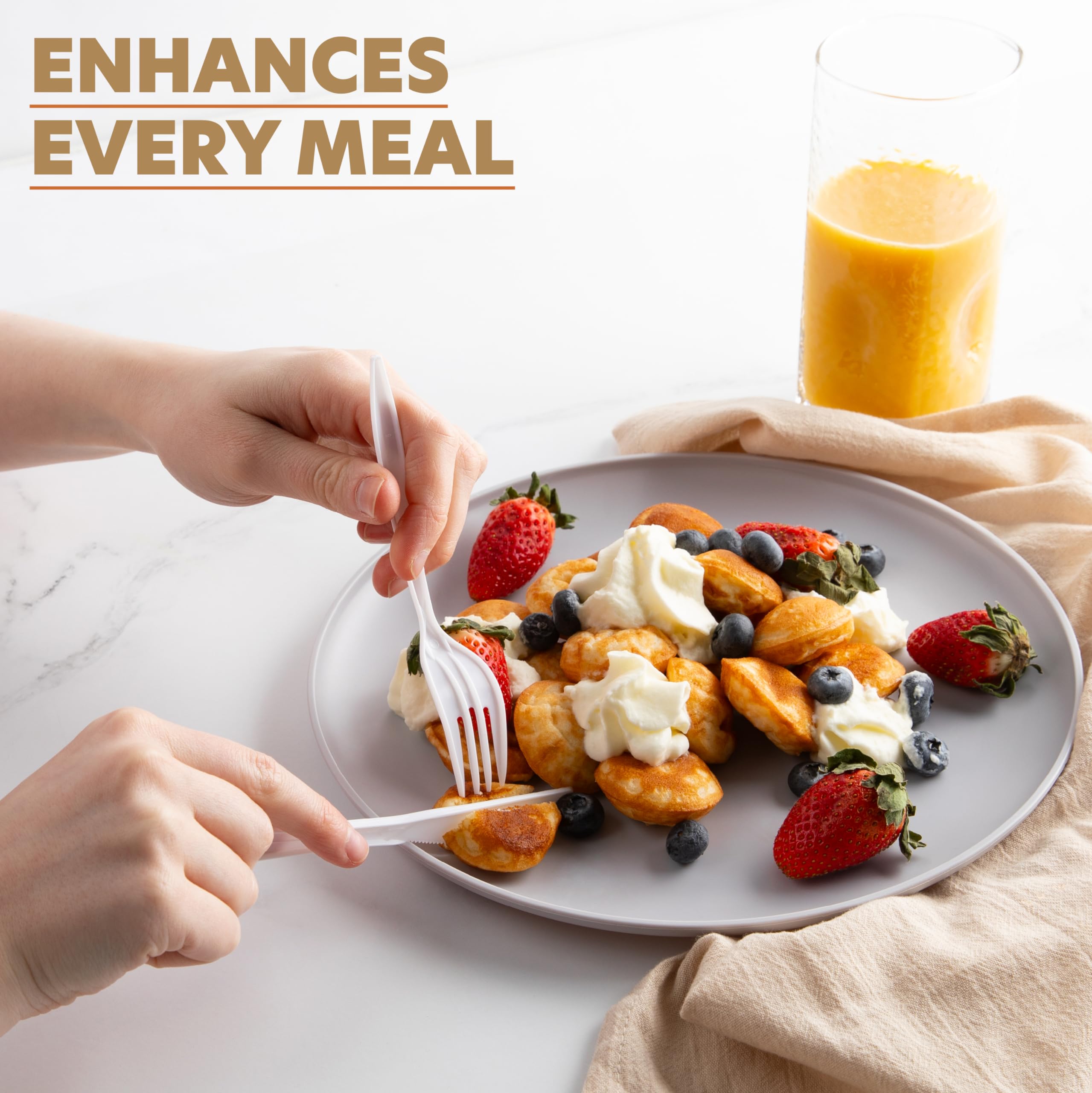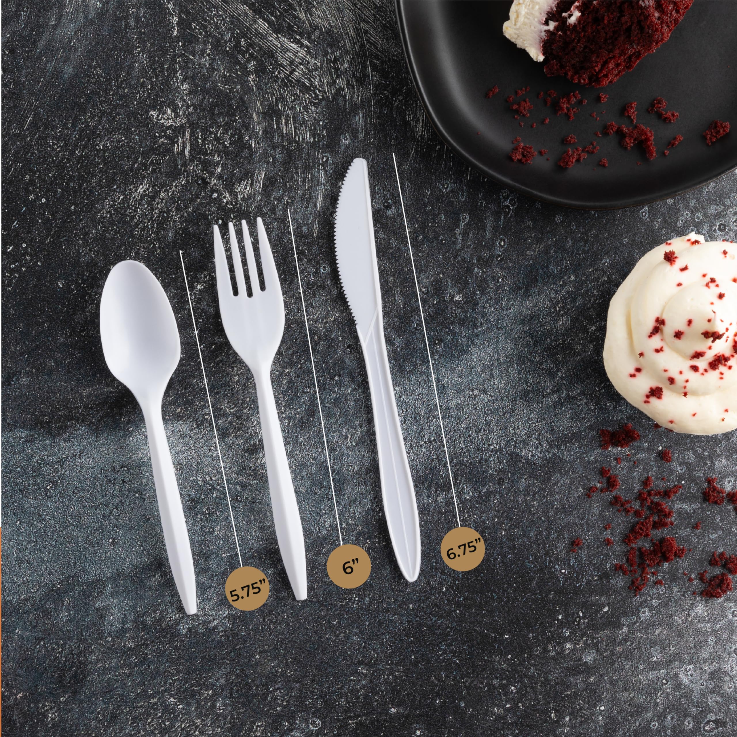Medium weight plastic cutlery for parties, dinners, and more. Made with food safe and quality BPA free plastic.