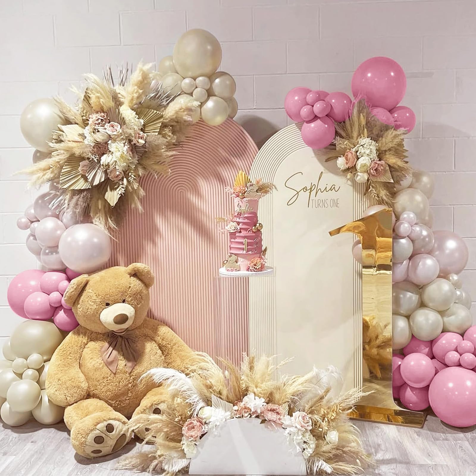 Versatile Uses: These Double Stuffed retro rose pink, pearl pink, beige, and metallic gold balloon party supplies are perfect for decorating girls' and women's birthday parties, bridal showers, baby showers, weddings, engagement parties, and more.