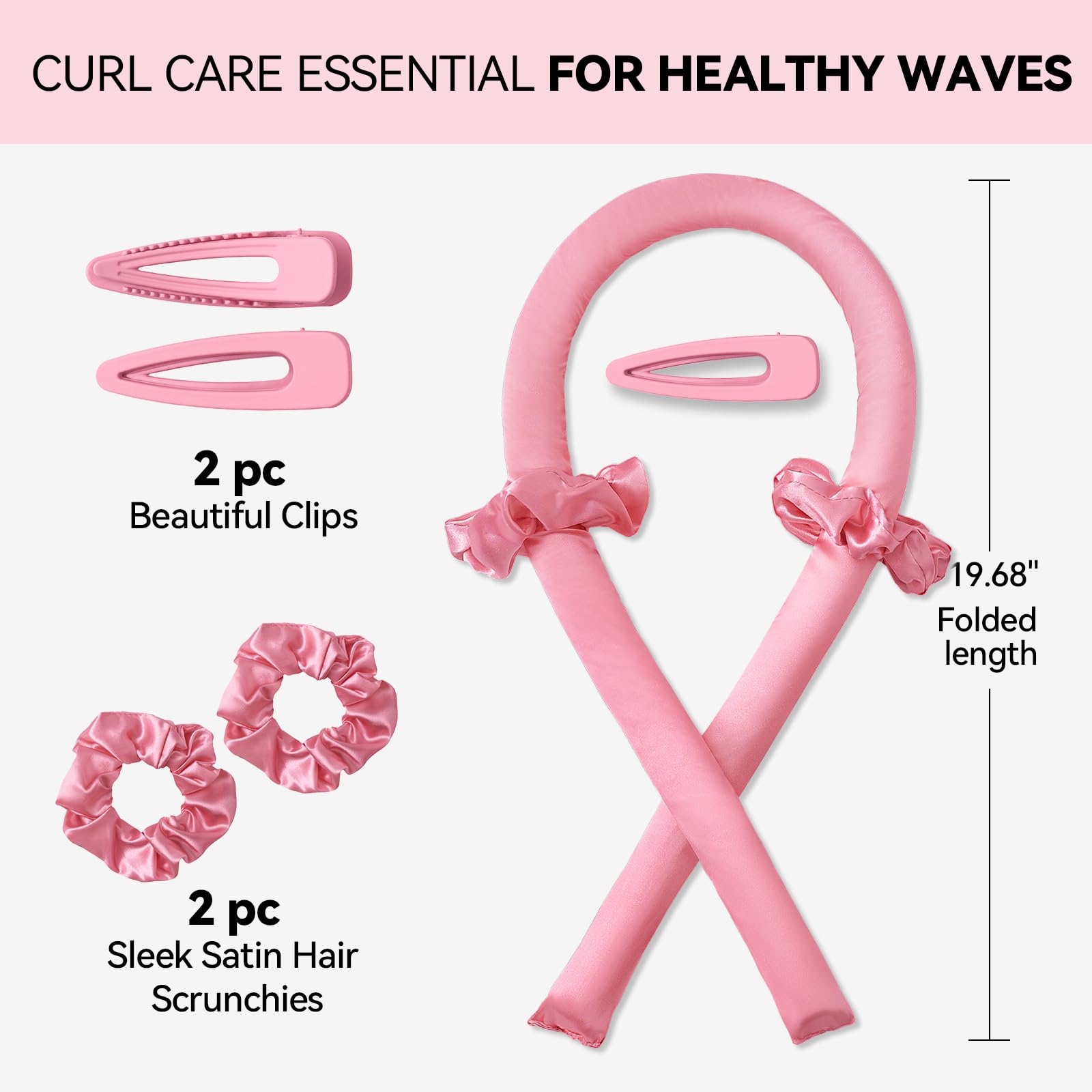 Luxury Gift-Ready Set: Complete with satin curling rod, 2 scrunchies, 2 clips, complete heatless curling set in a chic gift box. compact size (9.25" x 3.2"x2.7") fits carry-ons—ideal for holidays, birthdays, or gifting. Empower every woman to embrace heat-free beauty