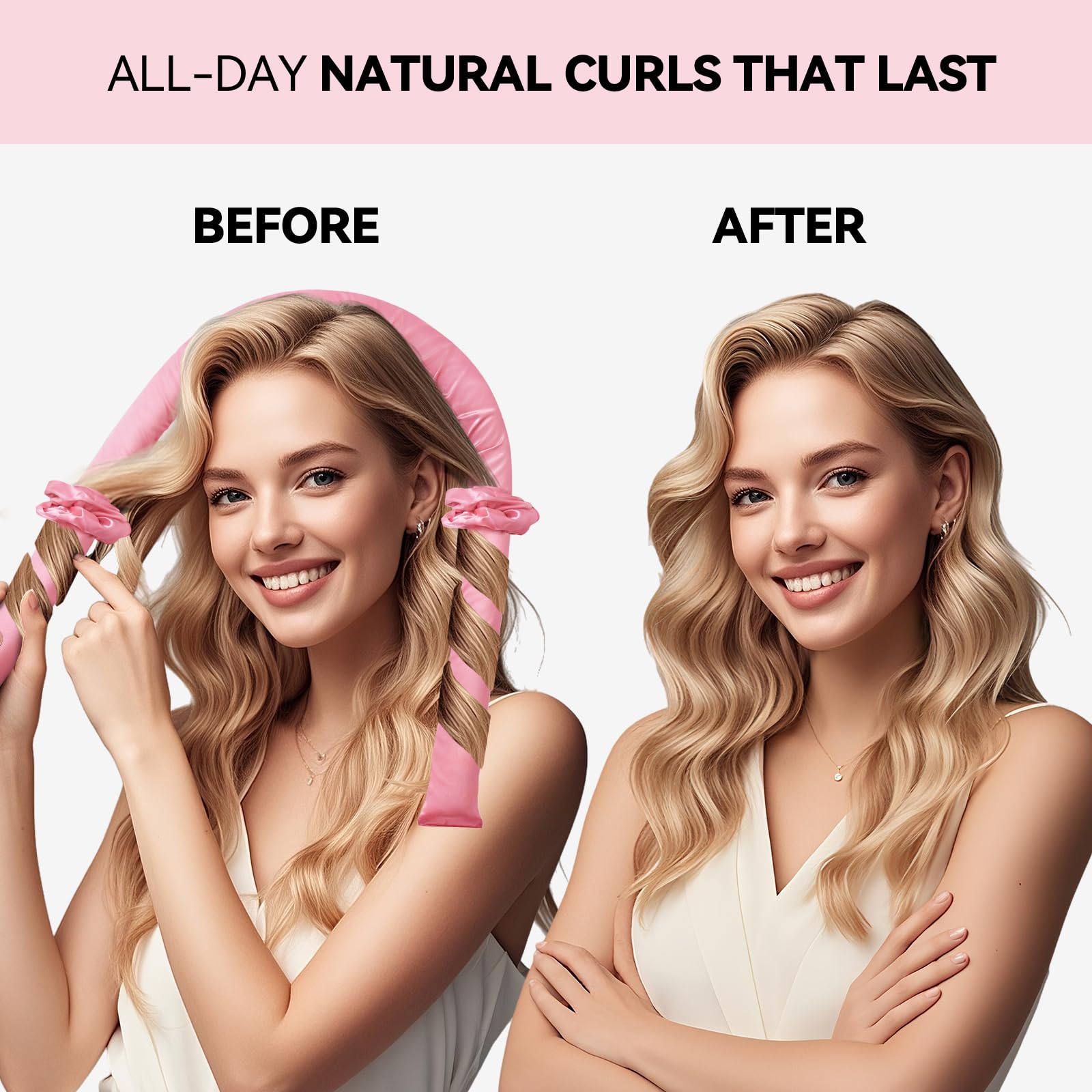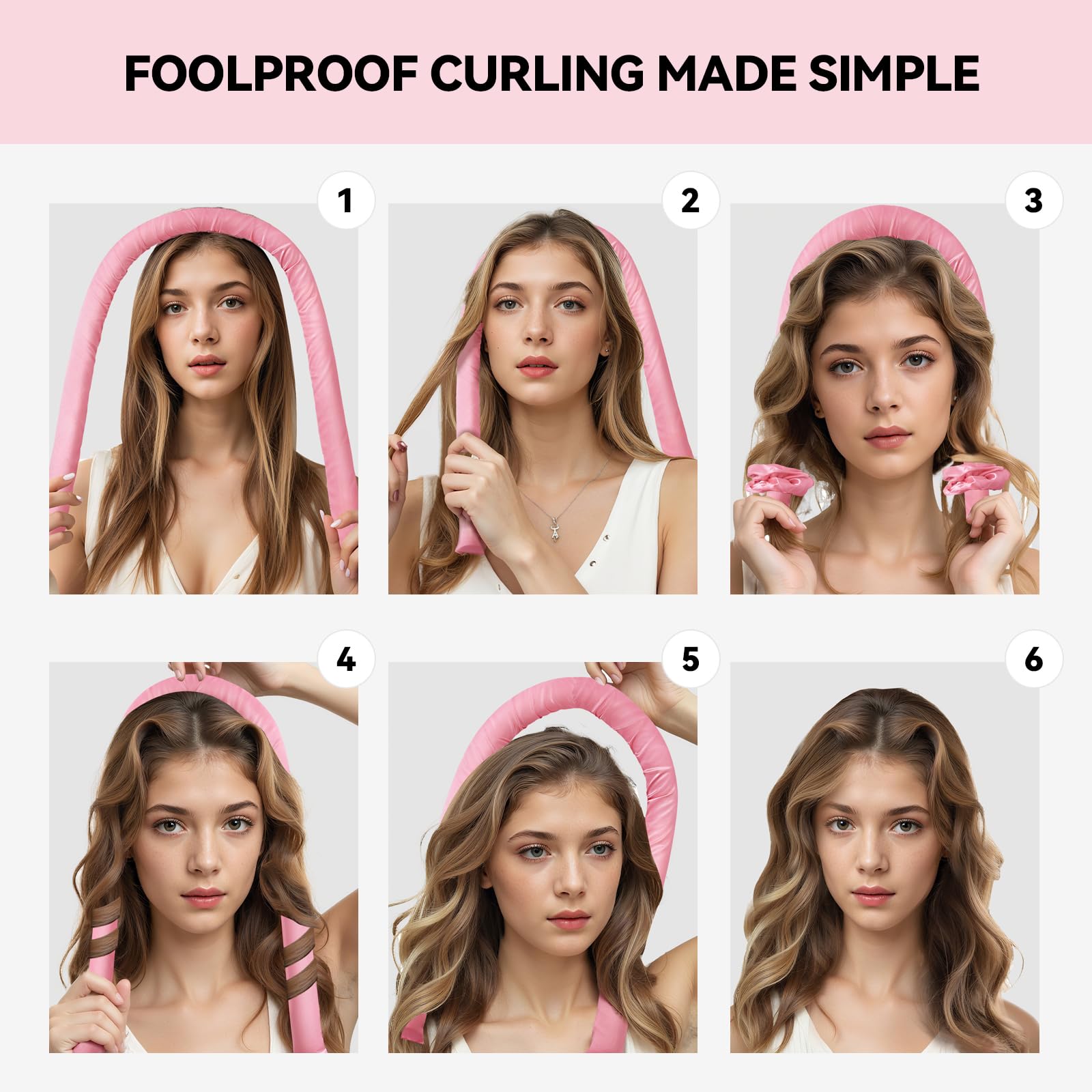 Convenient Use - Fast Shaping:Wrap your hair around the heatless curlers, secure the ends with a satin scrunchie, let it work while you sleep, and wake up to flawless curls-no heat, no hassle. check our tutorial for perfect waves every time