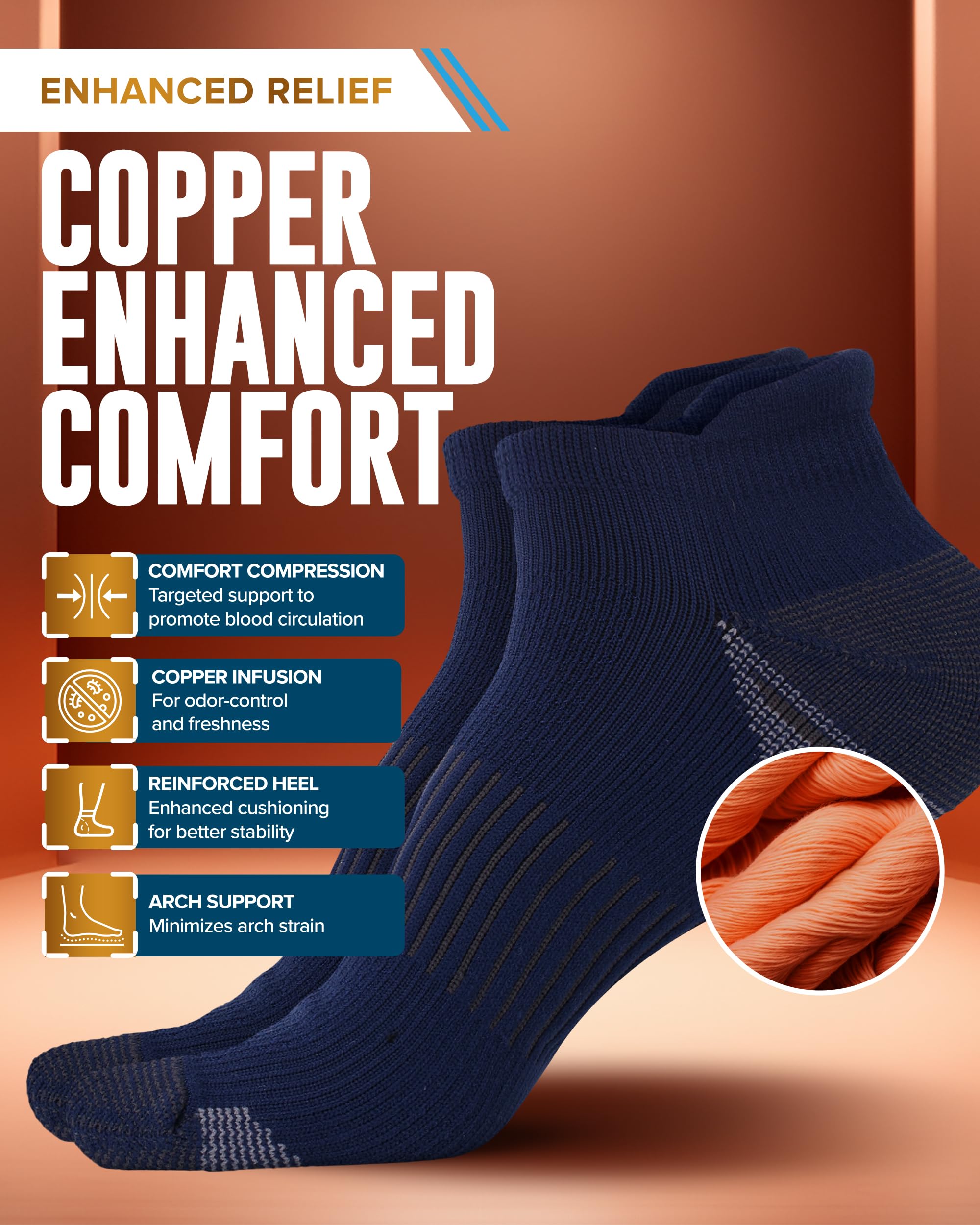 Experience Copper-Infused Freshness - Keep your feet fresh around the clock with copper infused socks crafted to fight odor and moisture. Whether you're on the move or unwinding, these socks deliver support with every step.