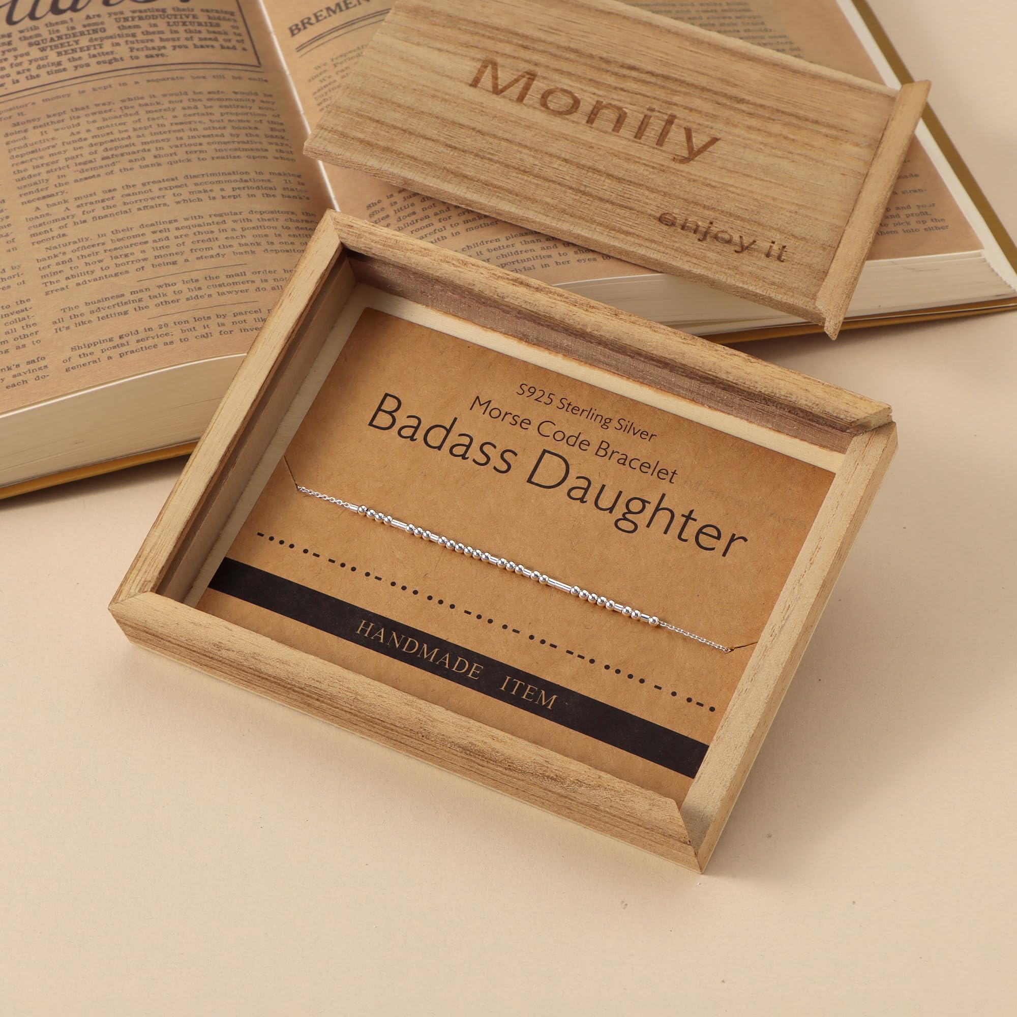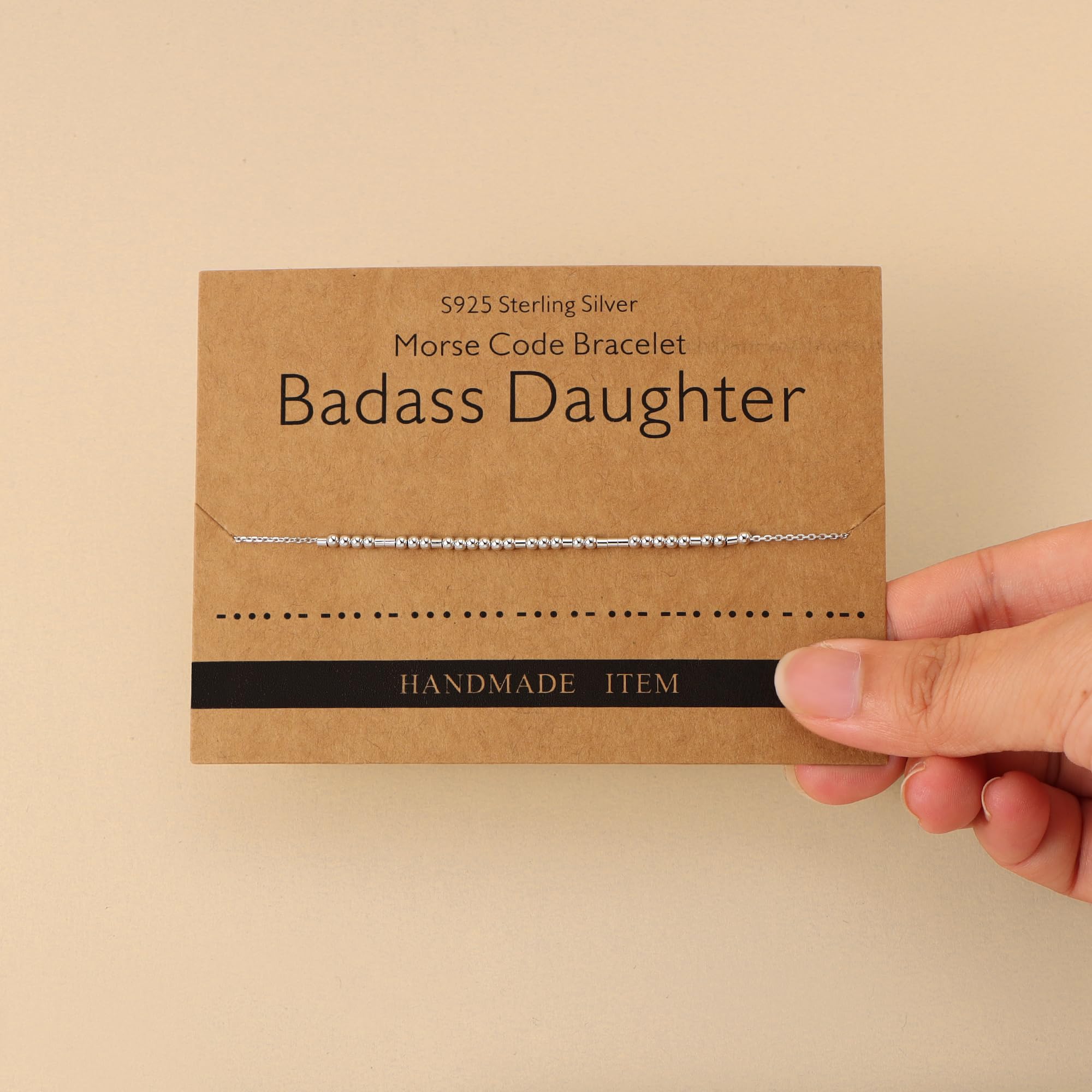 Design Ideas:Morse code born from ingenuity, represents a unique method of conveying messages through sequences of dots and dashes.Initially, Morse code served as the information bridge between telegraph operators,Currently a good way to deliver hidden messages. The bracelet for this listing is "Badass Daughter"
